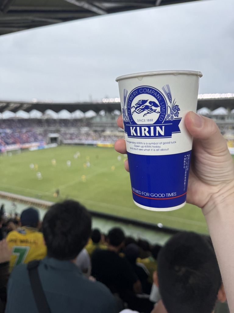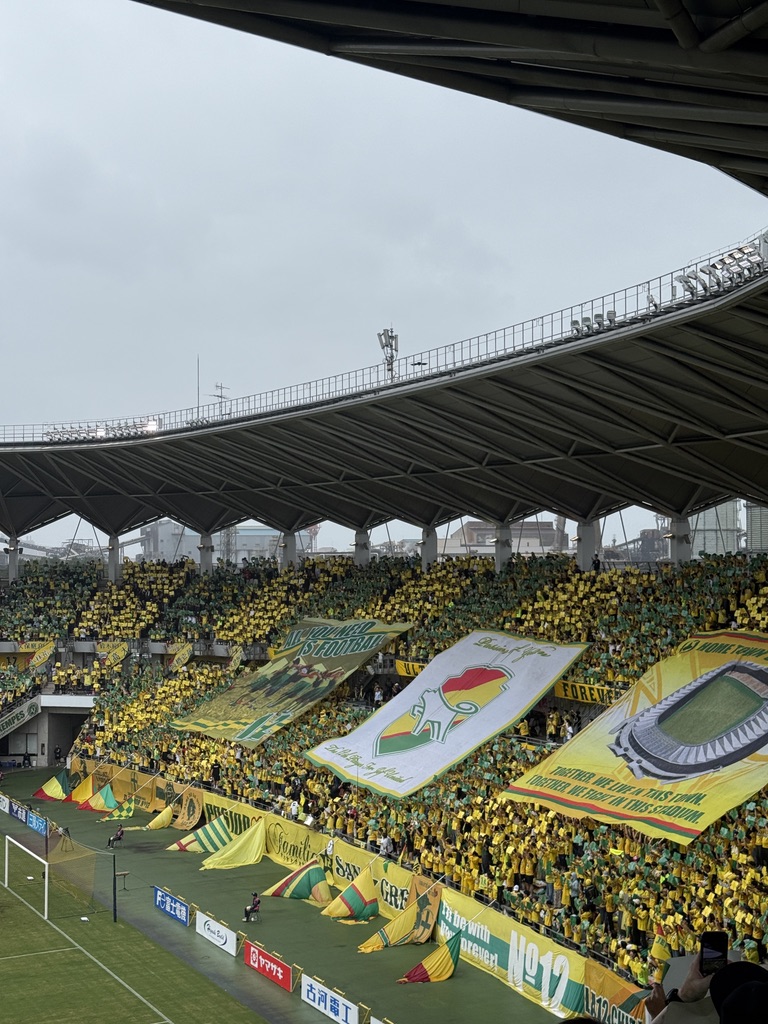 自由席を買うも、激混みで座れず一番上から立ち見で応援。