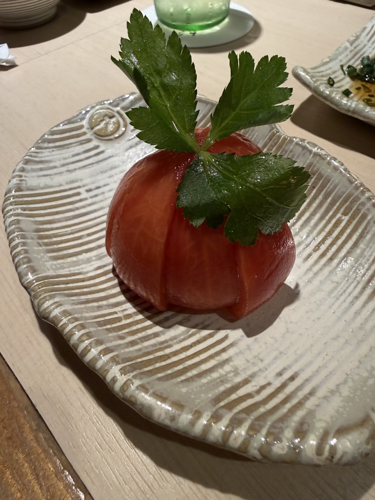 いい感じのタイミングで冷やしトマト。お塩(撮り忘れ)でいただきます。
