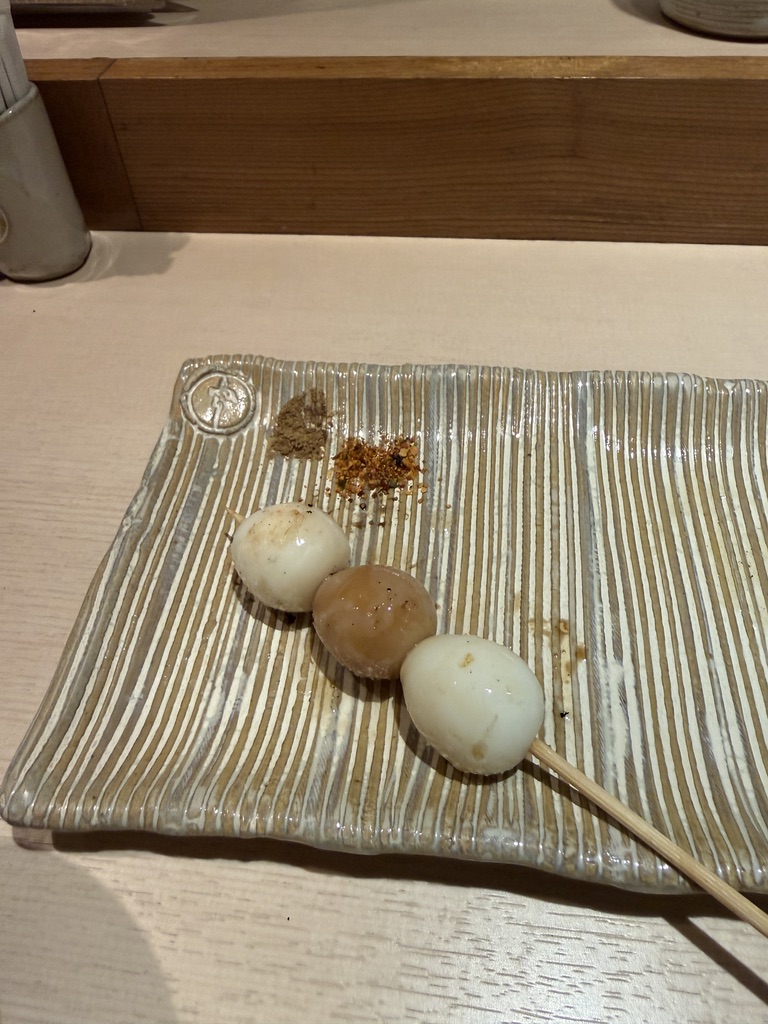 真ん中のうずらが燻製されていて、味も濃い感じになっていてうまい。全部これでもよいほど。