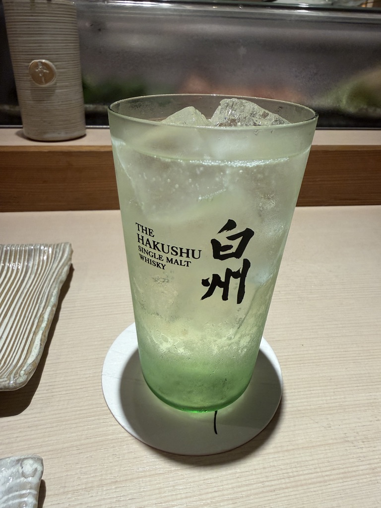 今度は飲み比べて的に白州12年のソーダ割り。やはり香りが強くなりますね。久しぶりに飲んだけどうまし。
