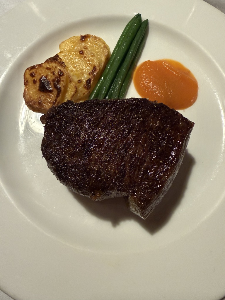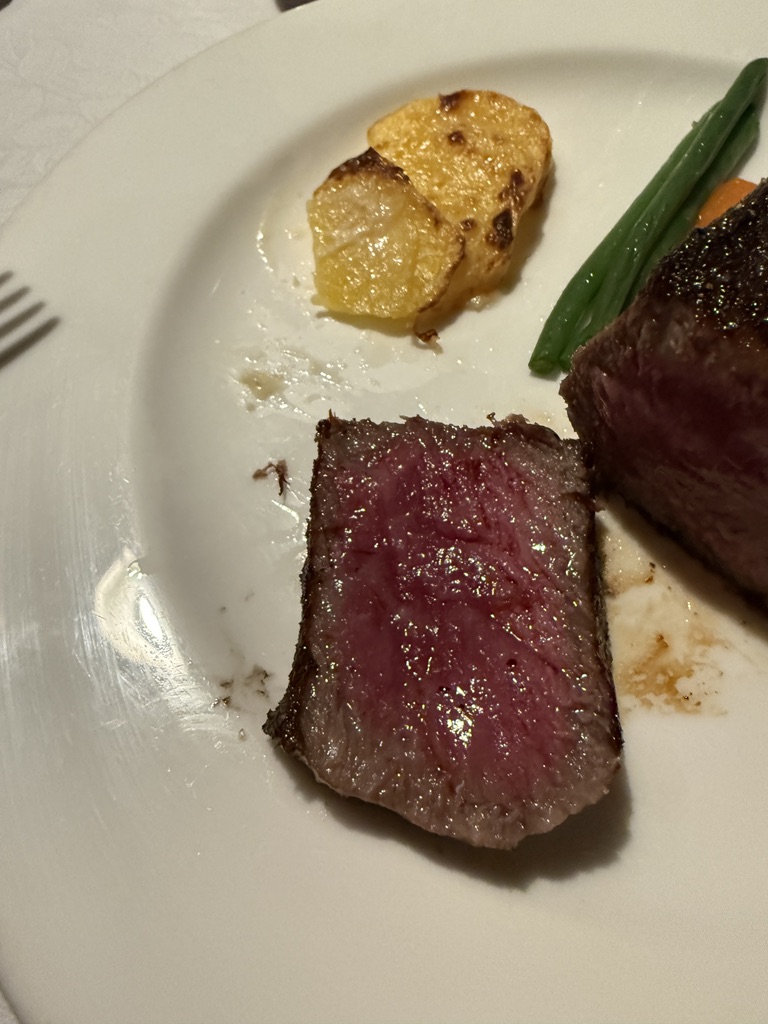 フォアグラのパンチが強かったので、ステーキに向けて一休みできて嬉しい。海老の甘味、旨さもさることながら、シンプルに野菜がうまい。