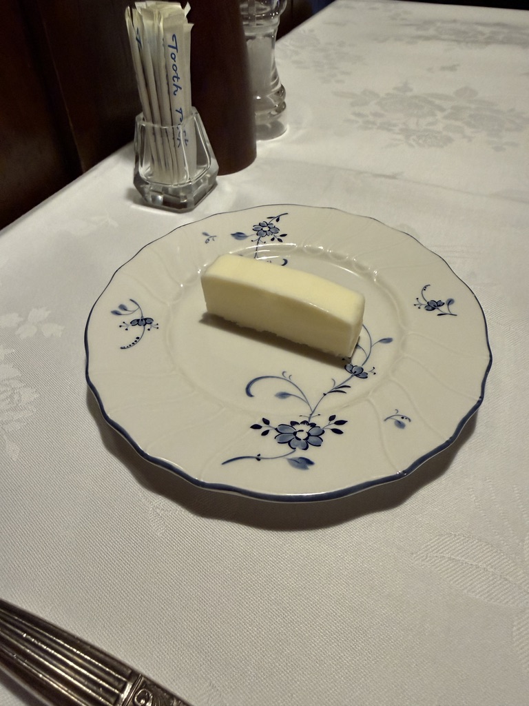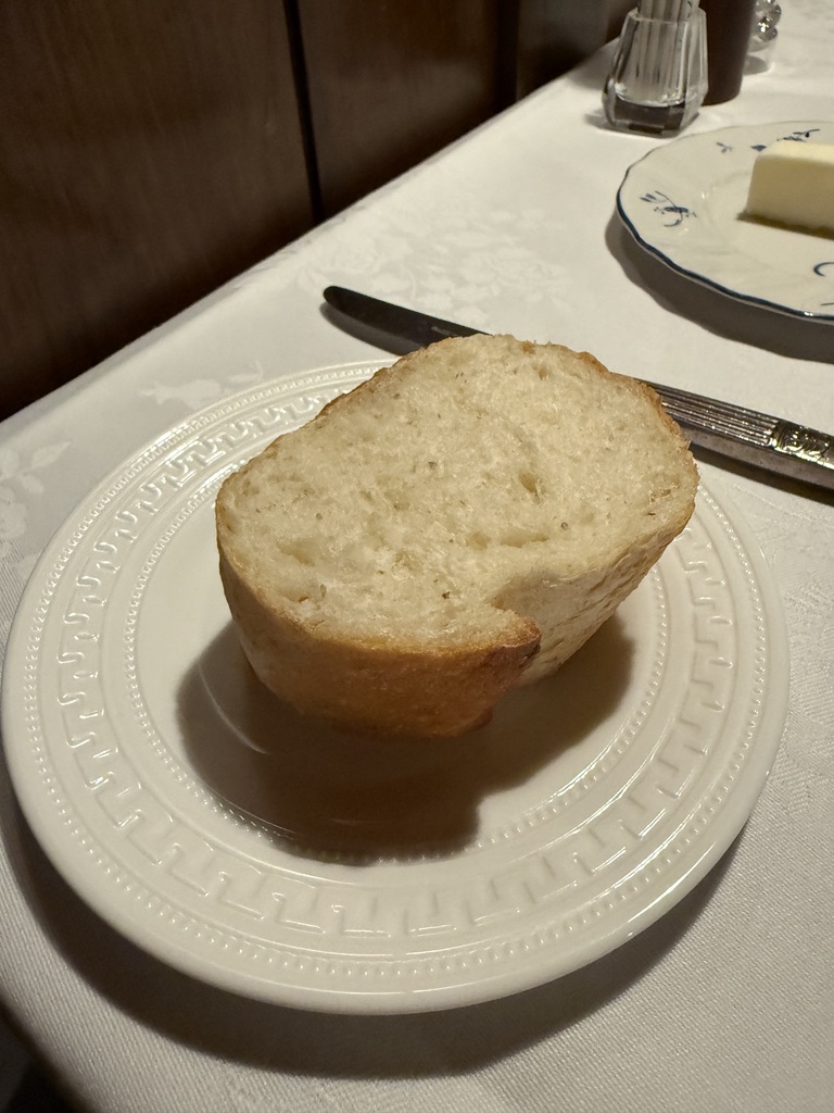パンはおかわり自由ぽかったけど、このひとつで。バターがえらい美しい佇まい。