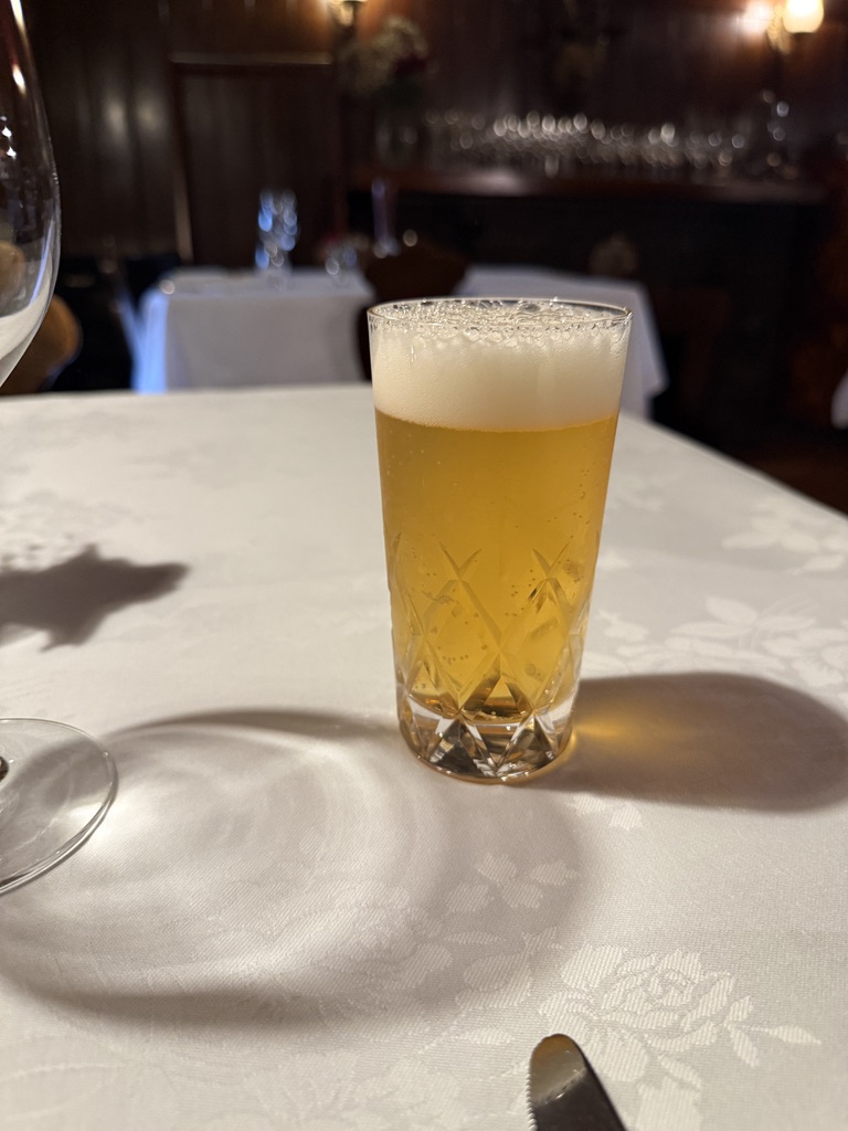 まさかのグラスだったんですが、プレモルの小瓶でなくなるたびに、注ぎに来ていただくスタイルでした。