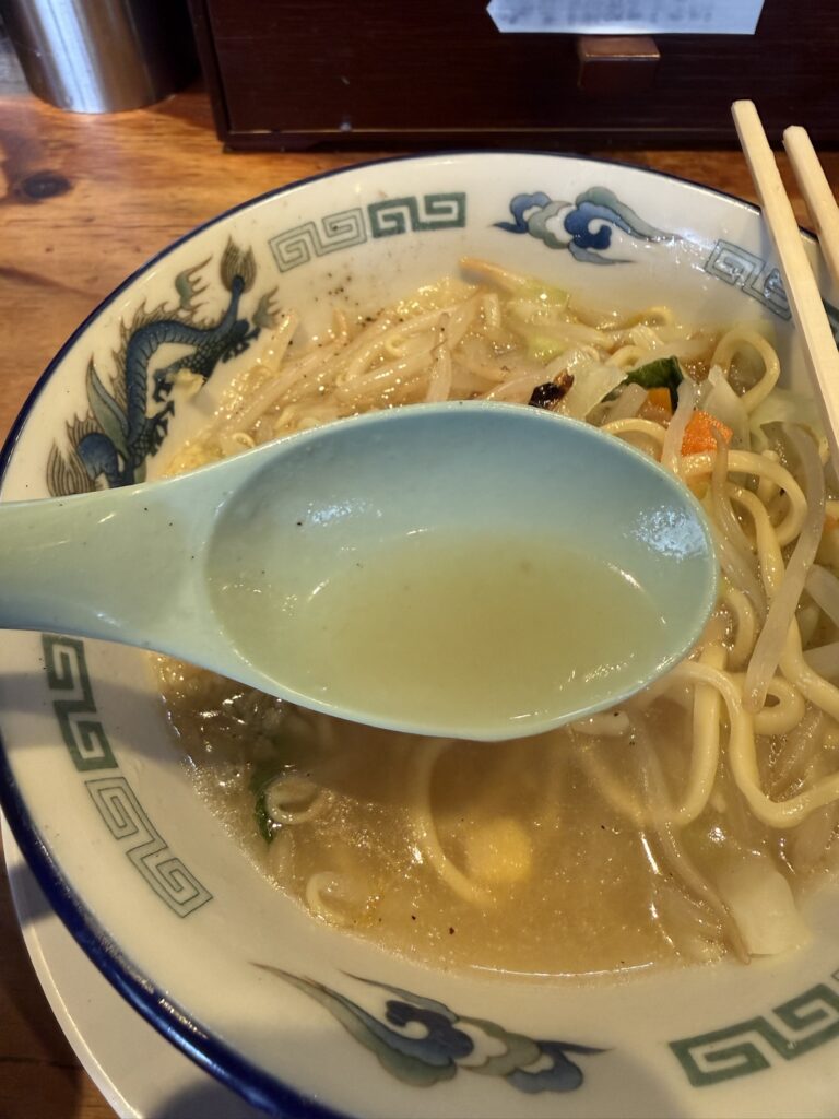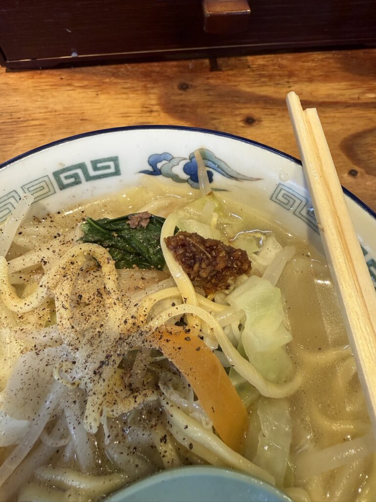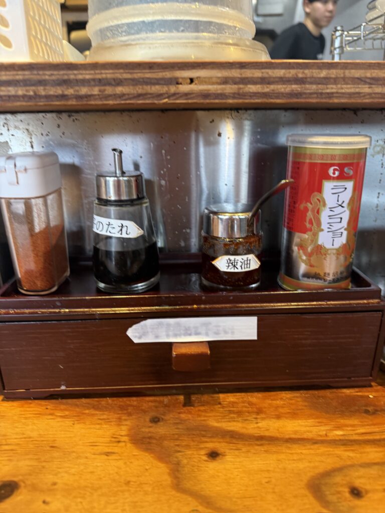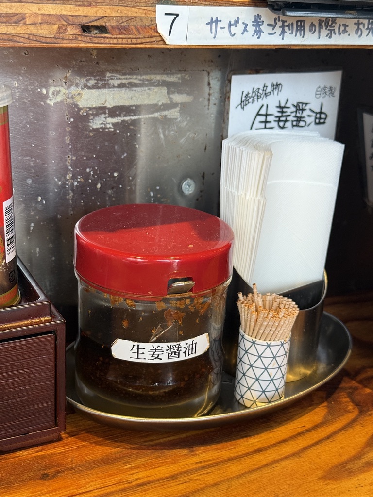 卓上にあった、生姜醤油と胡椒をかけてみる。よりパンチがあがってスープめちゃうま。