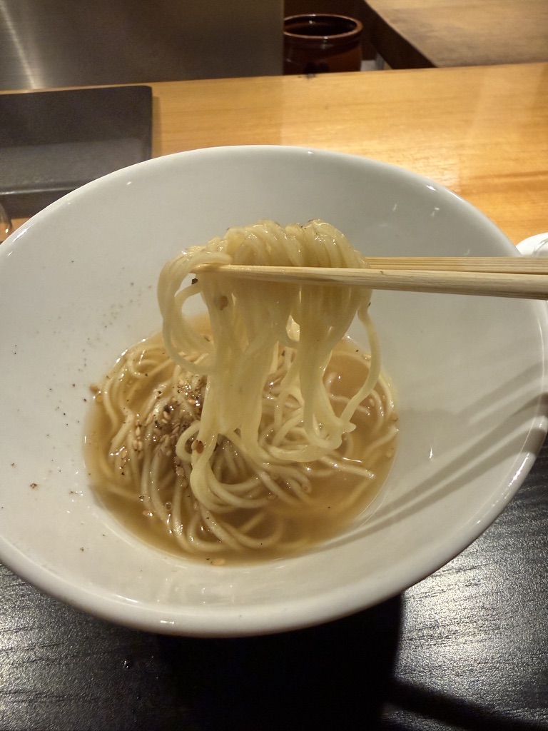 地鶏でとった出汁でいただく。思わずうまっと言ってしまうほど。細麺ストレートで食べやすく。