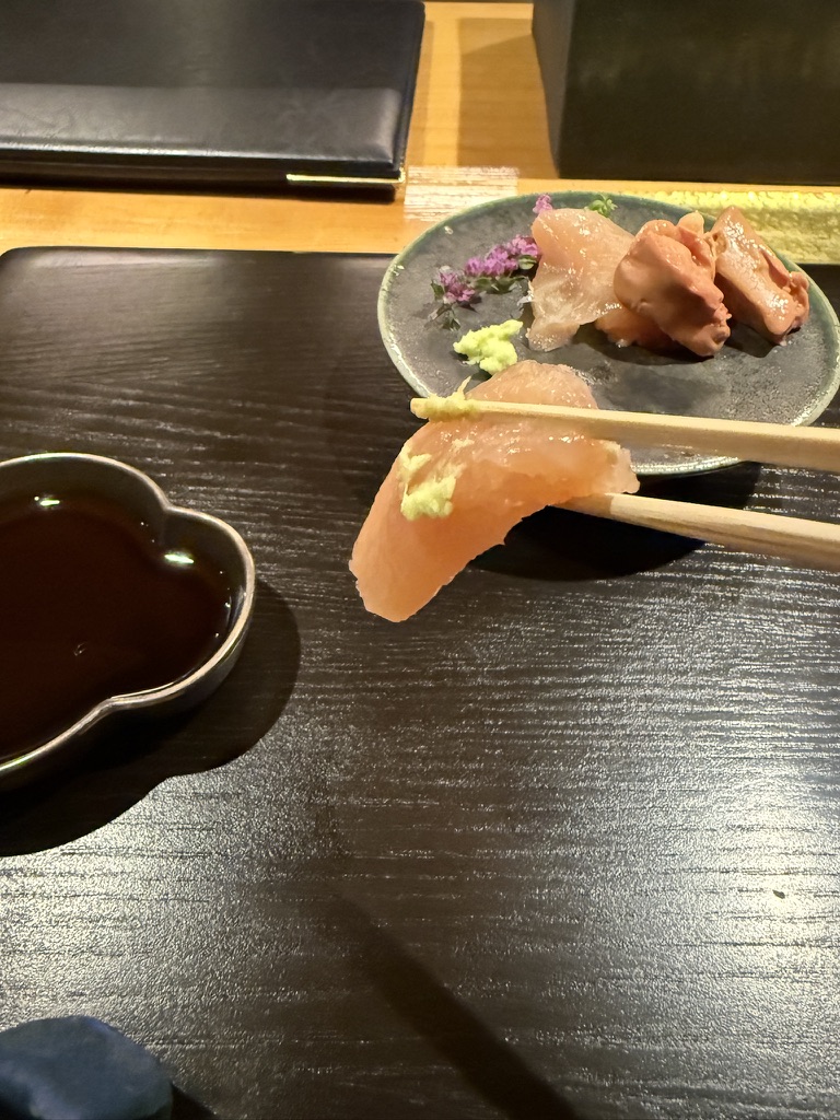 淡海地鶏の肝と名古屋コーチンの胸肉のお造り