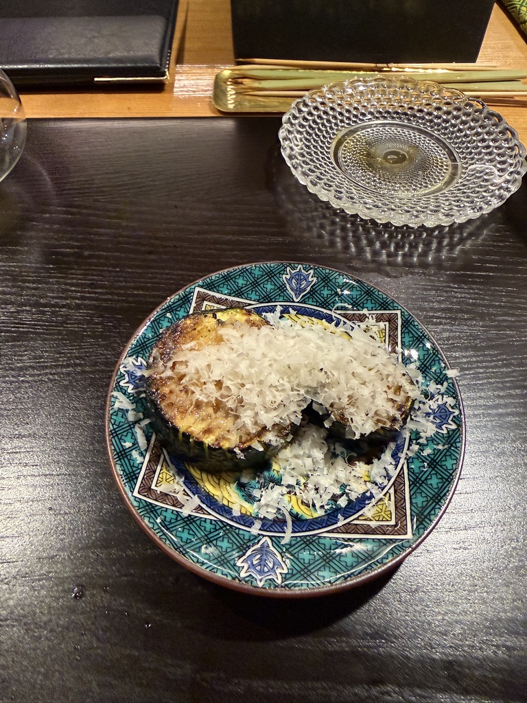 熱々。ズッキーニの甘味にパルミジャーノの塩味と旨味が加わってうまし。