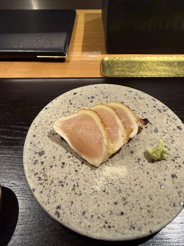 塩と柚子胡椒で。皮はパリパリ。肉はこちらも旨味がめちゃ強い。うますぎ。