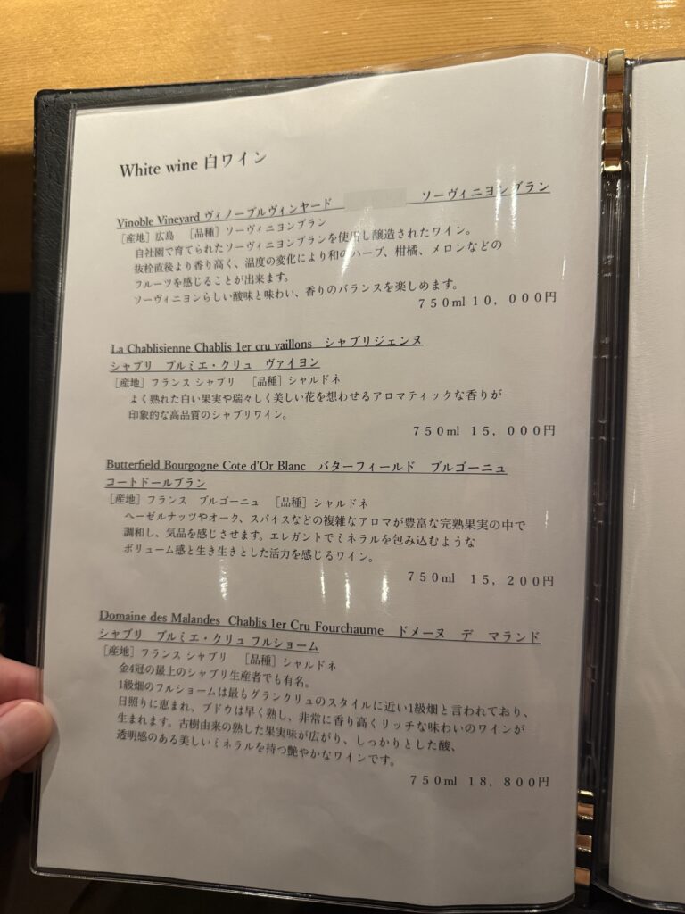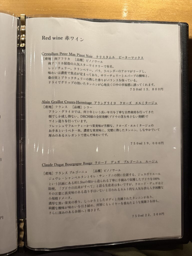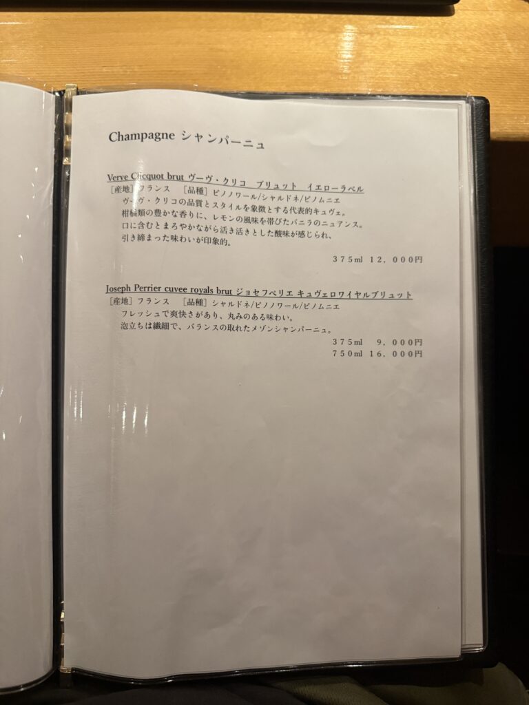 コースのみなので、メニューはドリンク。ワインとかも結構あって気になる。