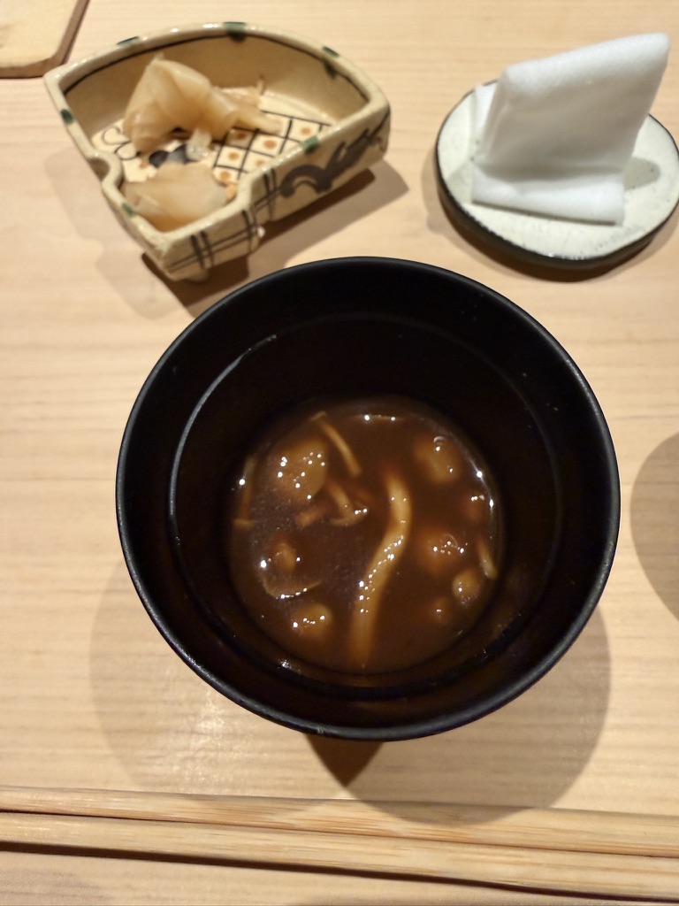 これが出てくると終わりも近くなって寂しい。この日はなめこ。香り高くほっと一息。