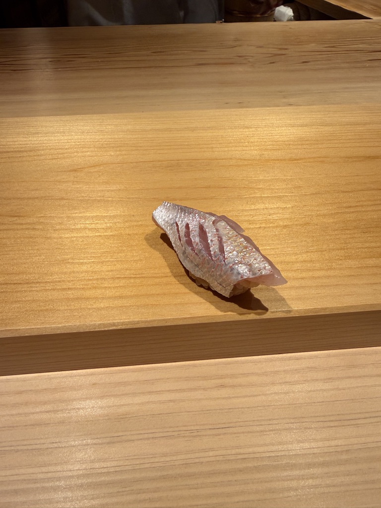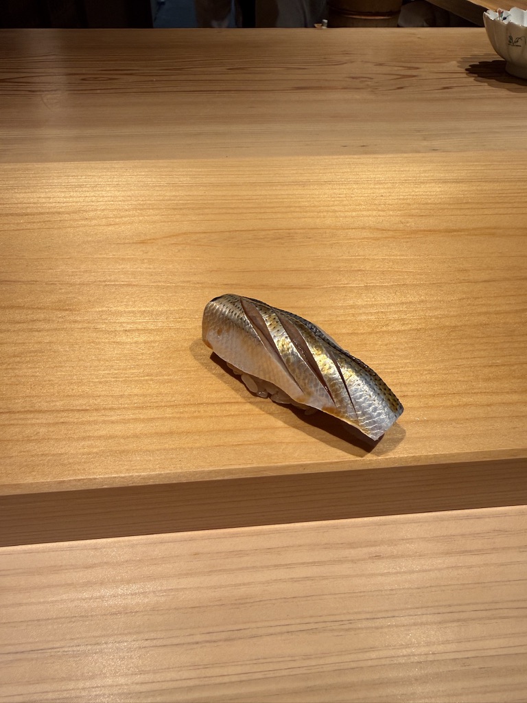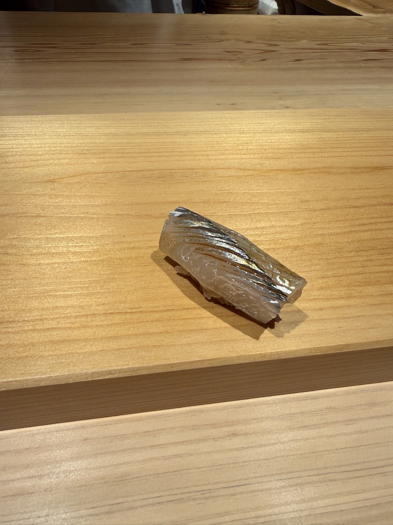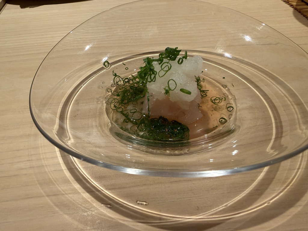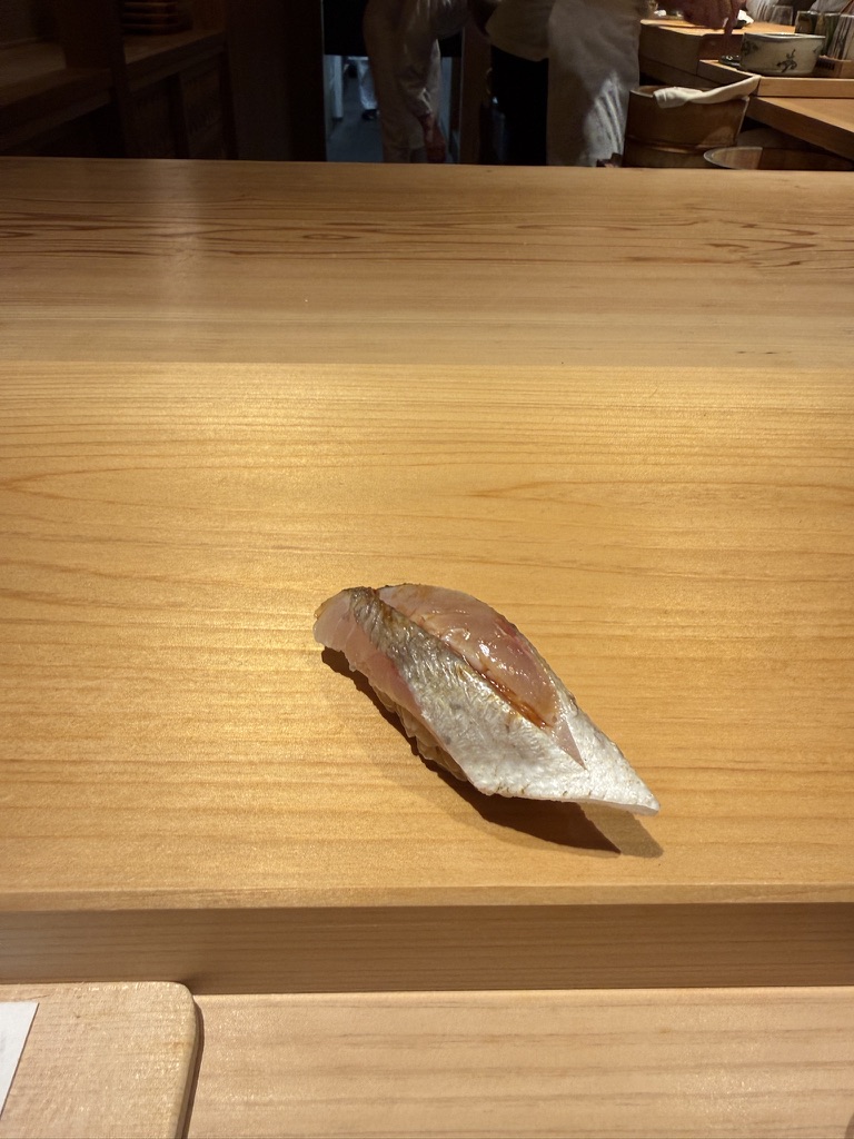 1品目はかます。酢締めをしてあり、さっぱりと且つ香りが引き立ってうまし。
