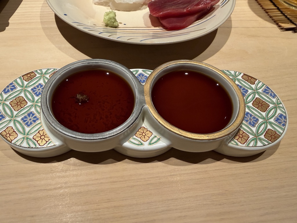ヒラメはワサビ醤油、やいとがつおは生姜醤油でいただきます。