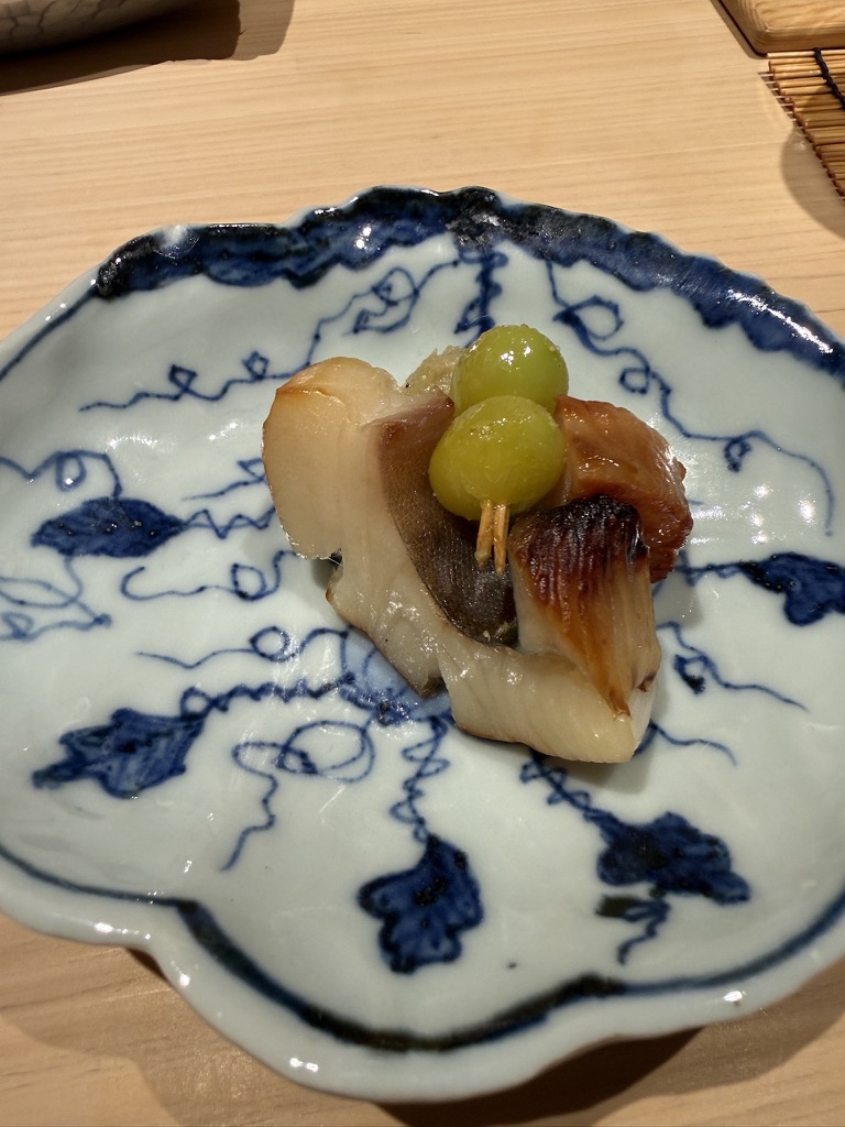 続いてはまながつおの焼き物が2種類と銀杏、見えないですが長茄子ほペースト的なものが後ろにいます。