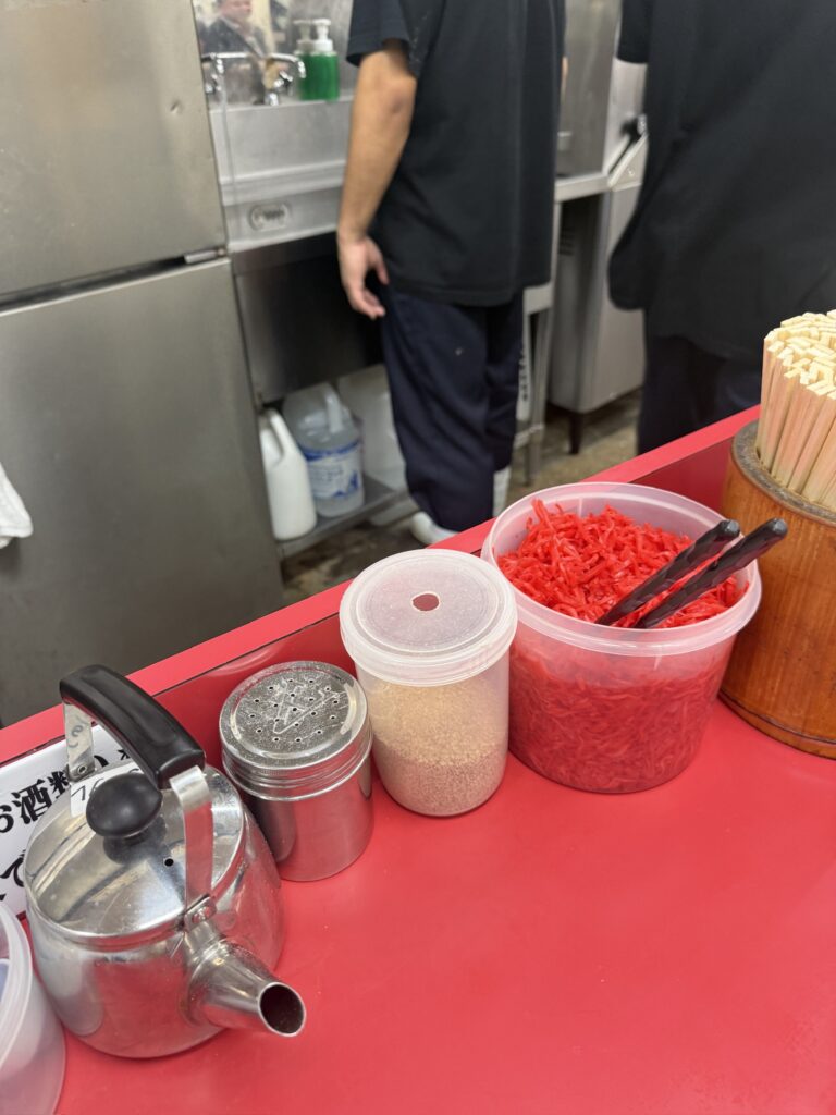 スープ1口飲んで、紅生姜とごま投入してもうた。