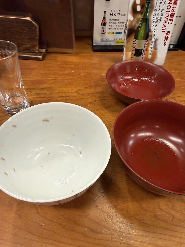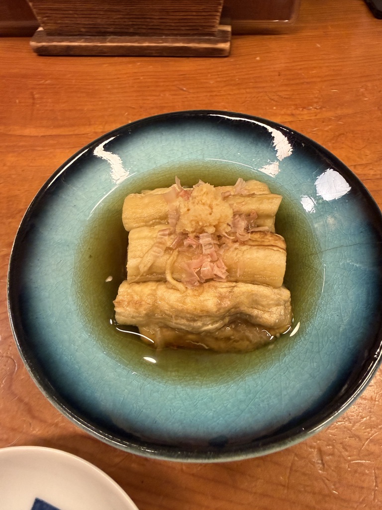 焼いたなすの香ばしさと出汁の旨さ、生姜で味がしまってる感で当たり店を確信。