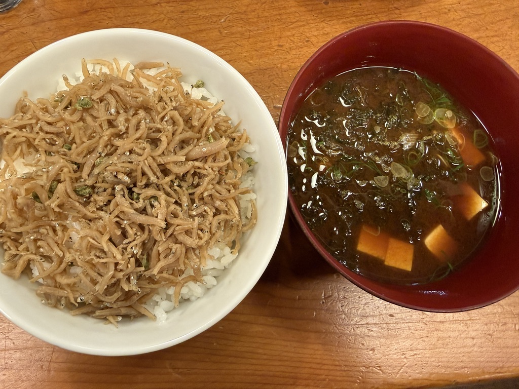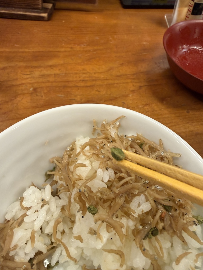 となりの人がちりめん山椒ごはんを頼んでいてめちゃうまそうだったので、便乗。