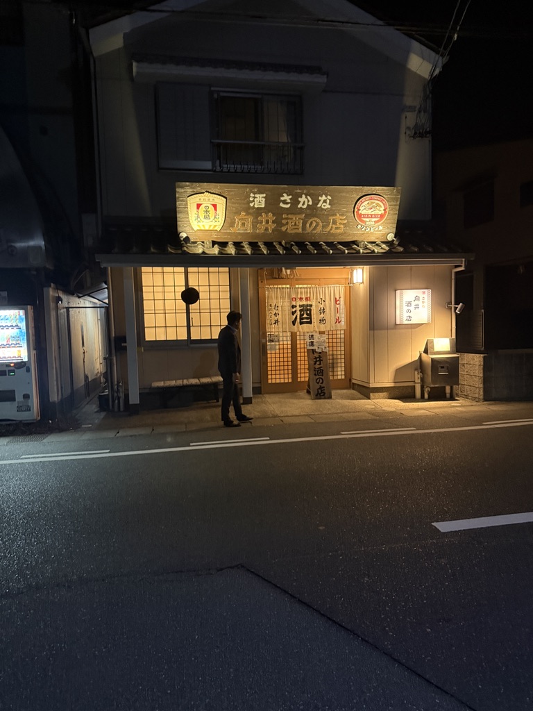 向井酒の店。むかいざけのみせとも読める。ダブルミーニング?。