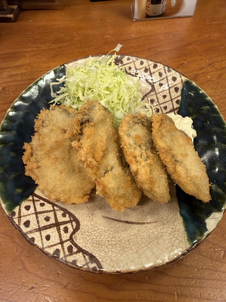 なんか平べったい牡蠣だなと思いつつ、食べてみると激ウマ。人生の中でもかなり上位なカキフライ。