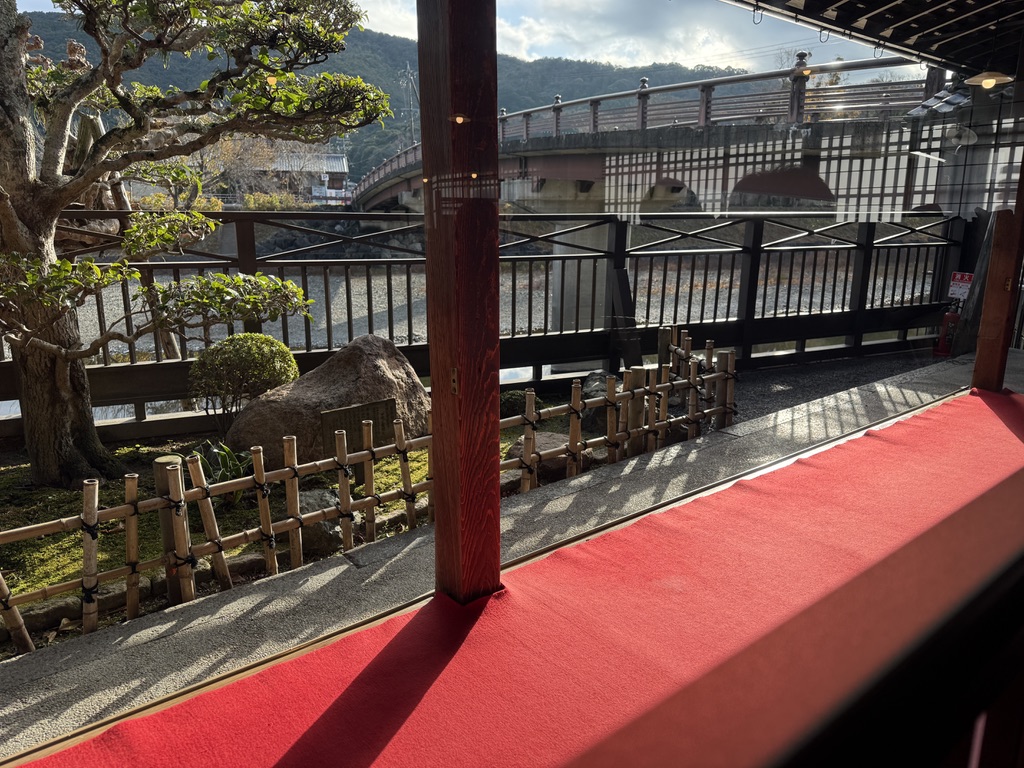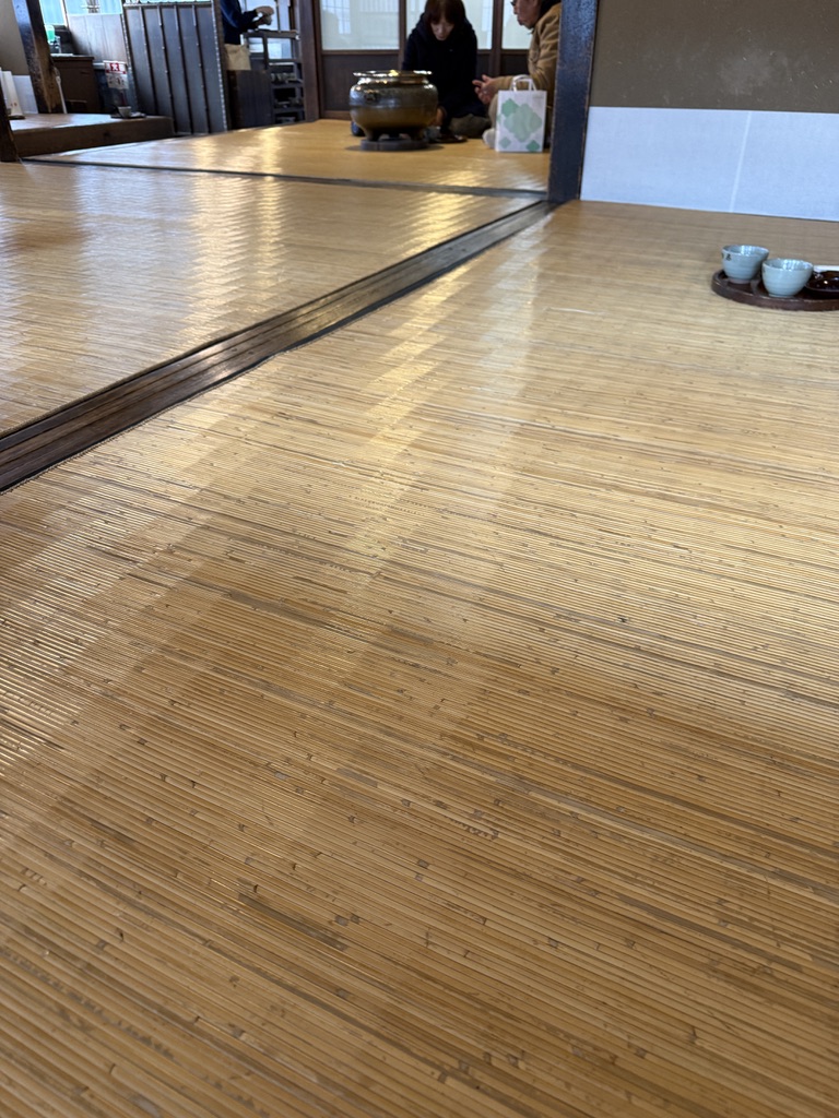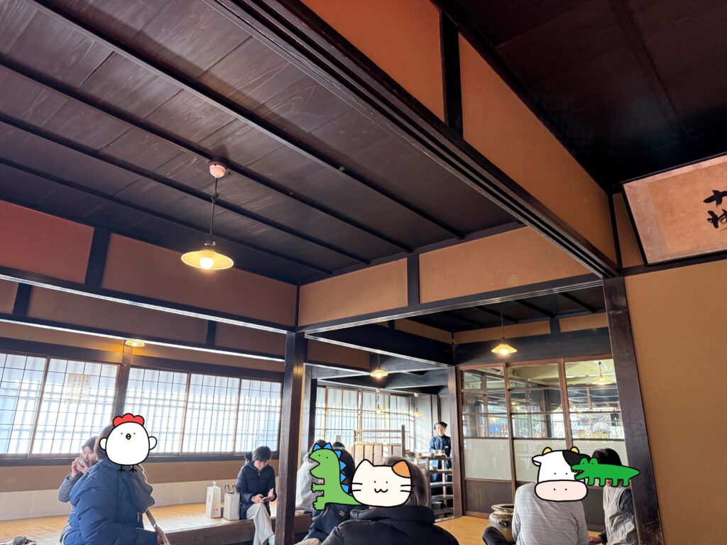 外の縁側的なところで食べるかって感じ。寒いから縁側は誰もいなかった。