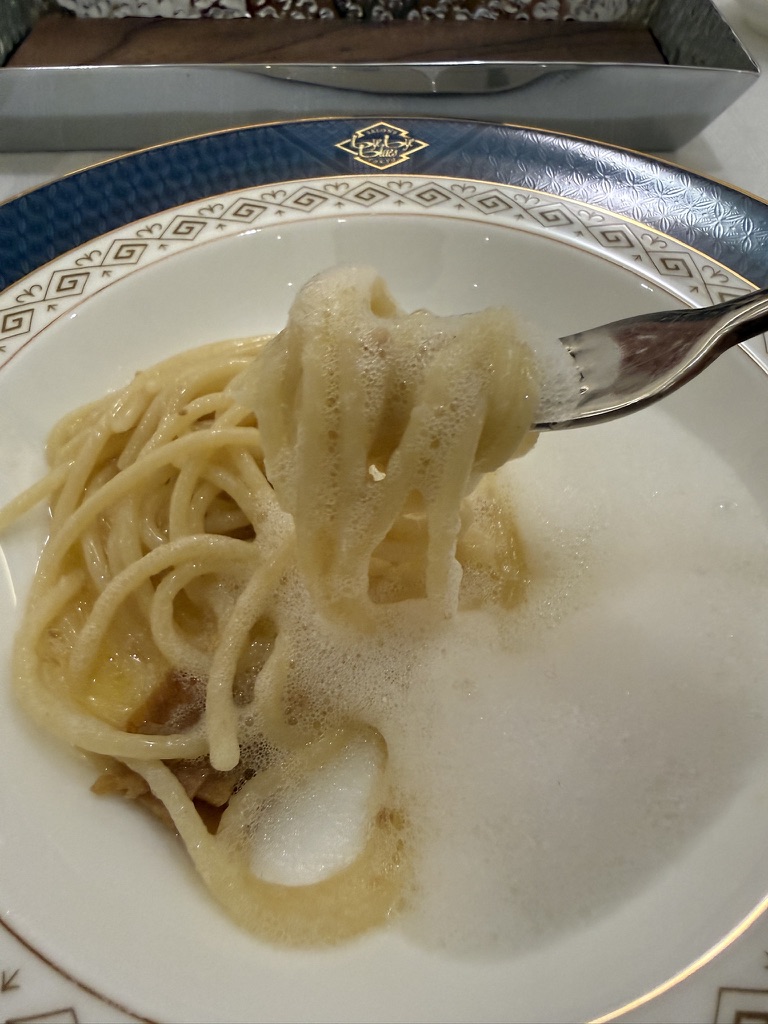 シチリア産マグロのカラスミとトマトウォーターのスパゲッティ
