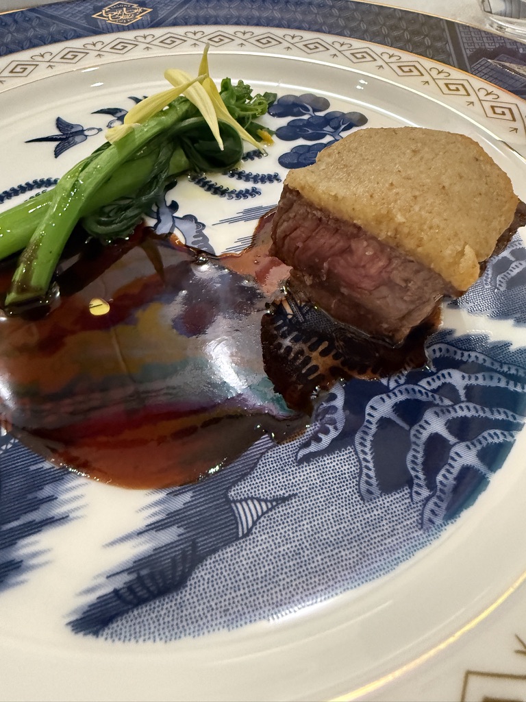 榊山牛も美味でしたが、こちらもうまい。赤身の旨味がしっかり濃く、さらに上に乗っているラグザーノチーズのクロスタと赤ワインソースが濃厚さを加速させる。