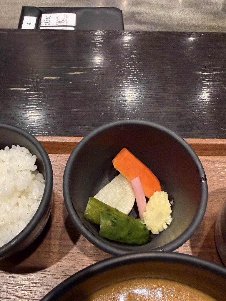 その他はデフォルトでついてくるご飯、ピクルス、和だし。