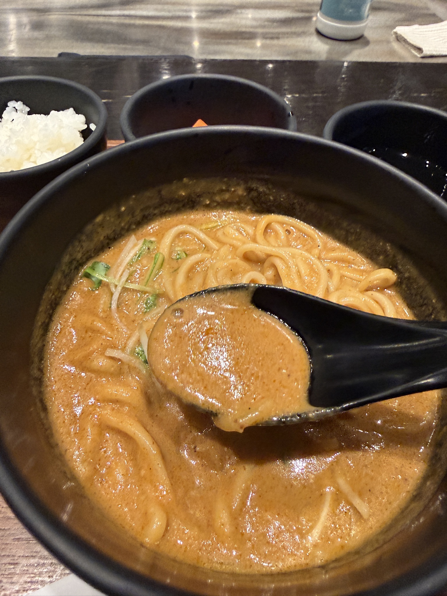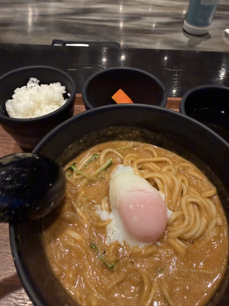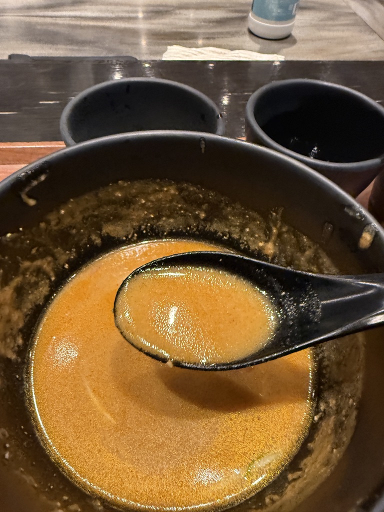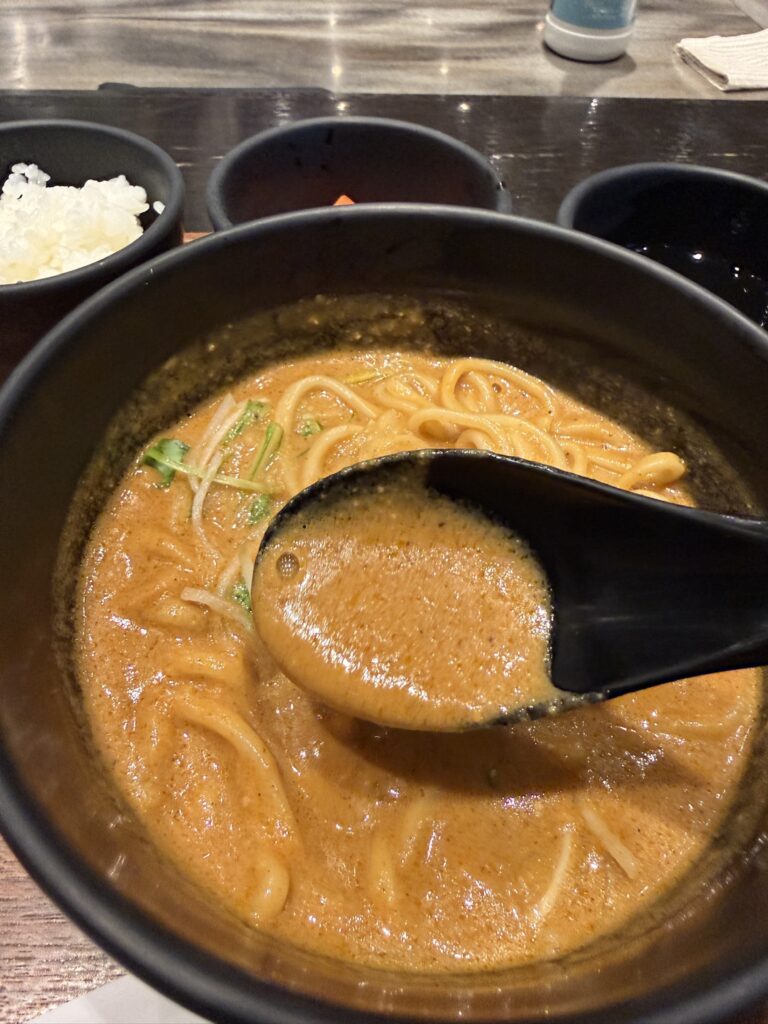 スープはなかなかの粘度感高め。そしてスパイシーさも兼ね備えてます。
