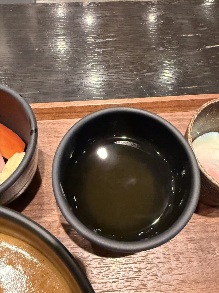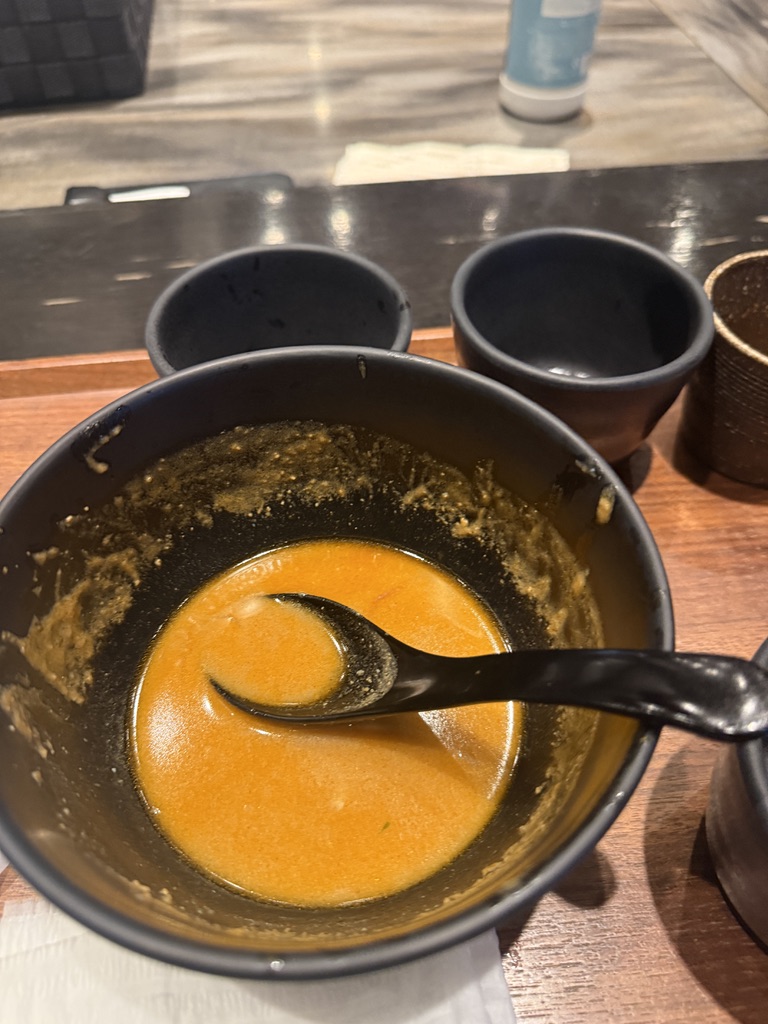 最後までは和だしをかけてスープ割りの要領で、スープを頂いて終了。割る前に結構飲んじゃったので味薄めになってしまったけど。