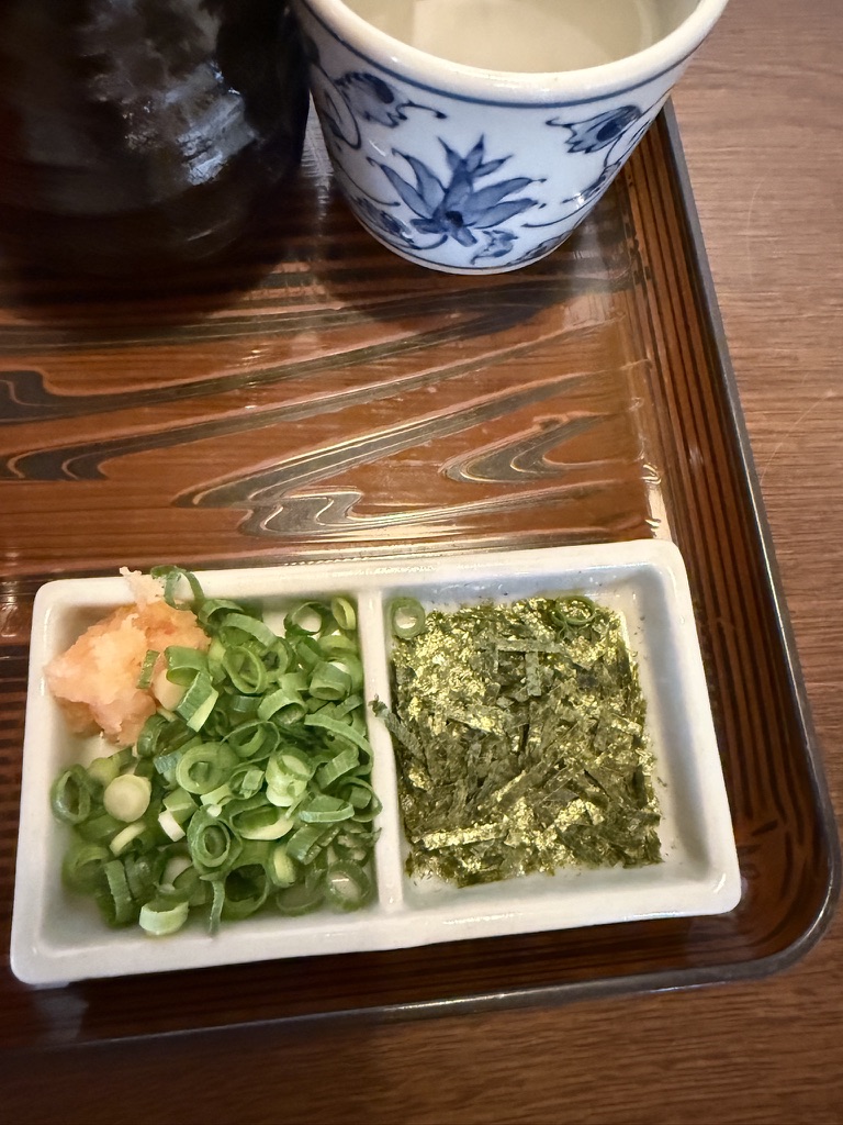 薬味として、海苔、ねぎ、もみじおろしがついてきます。