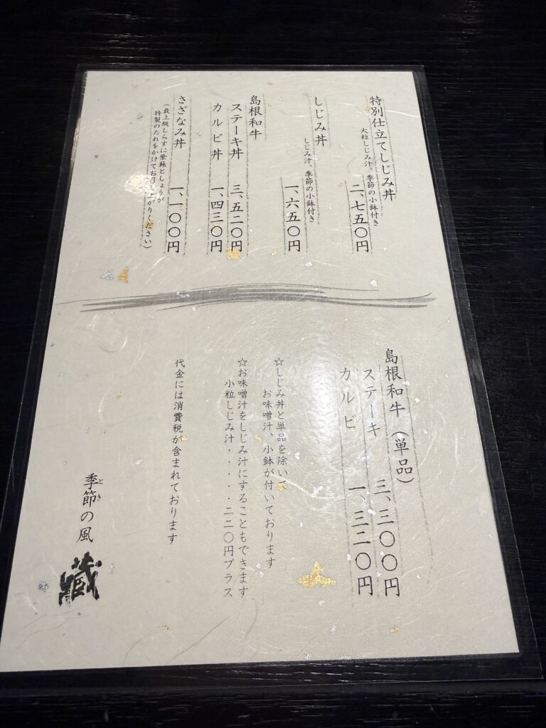 島根和牛とか、さざなみ丼のしらすとかも気になりますが、初志貫徹で特別仕立てしじみ丼を。