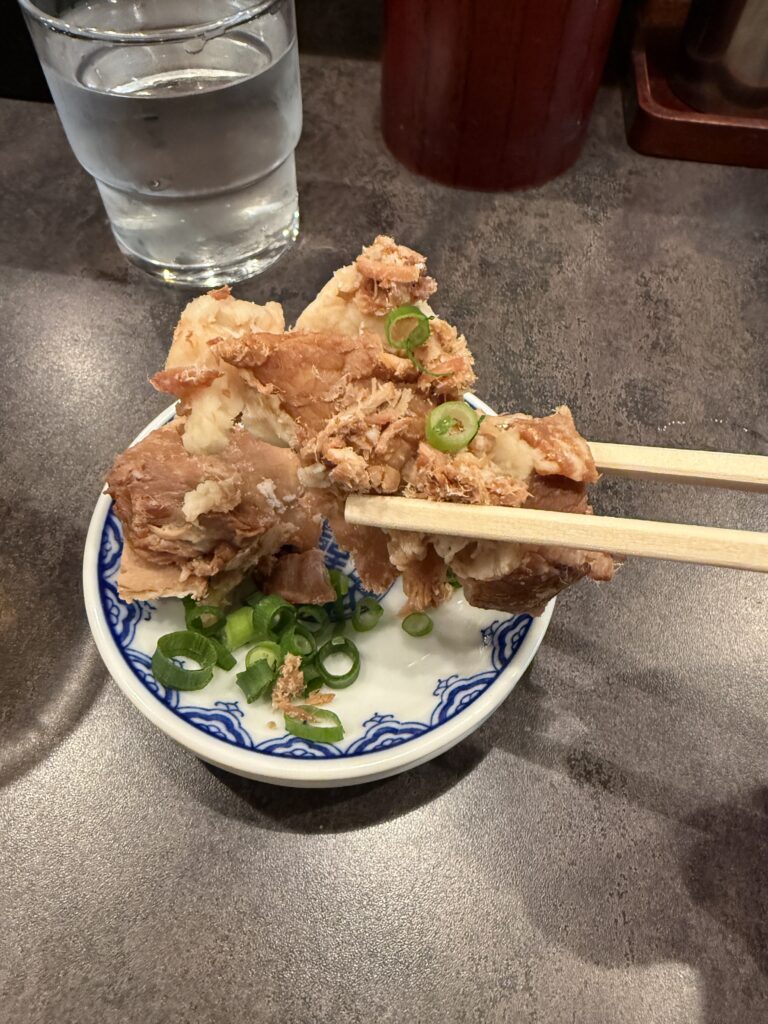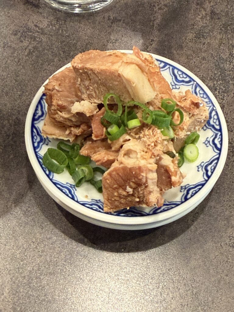 飲み始めていたらおつまみ。チャーシューの切れ端を頂きました。酒飲み歓喜。というか結構大きめ。