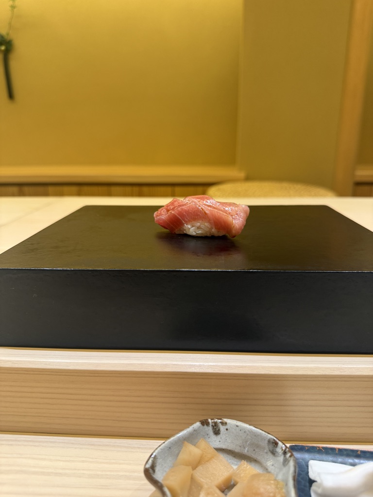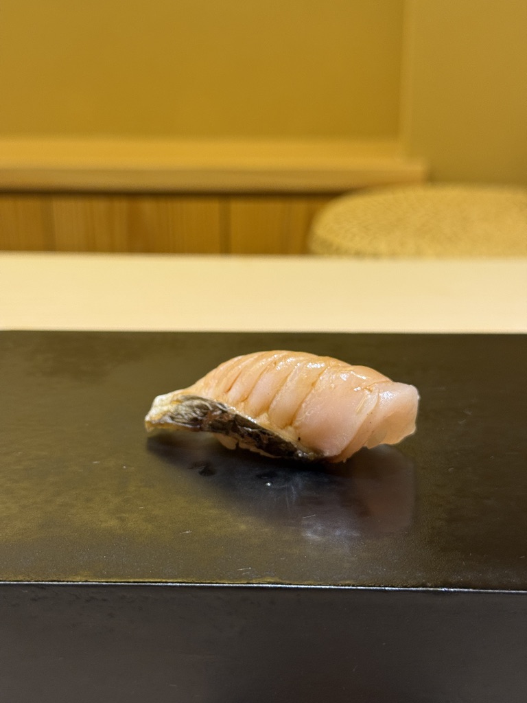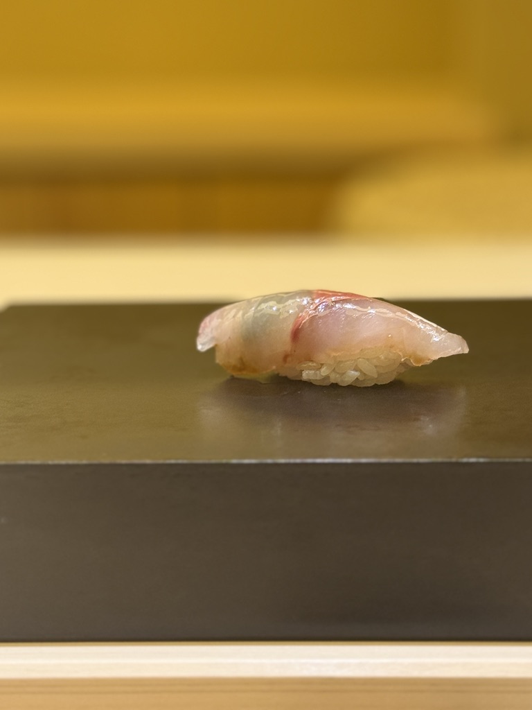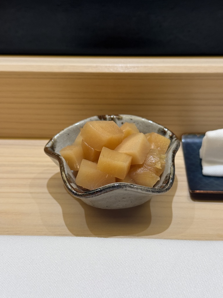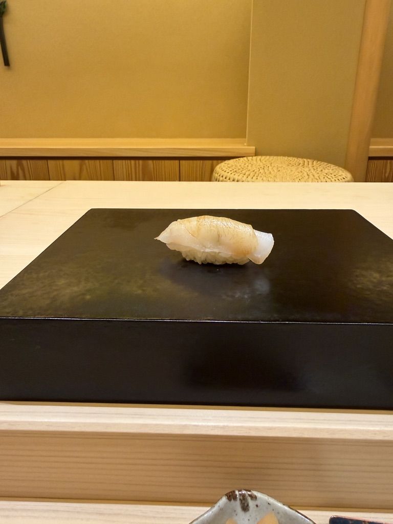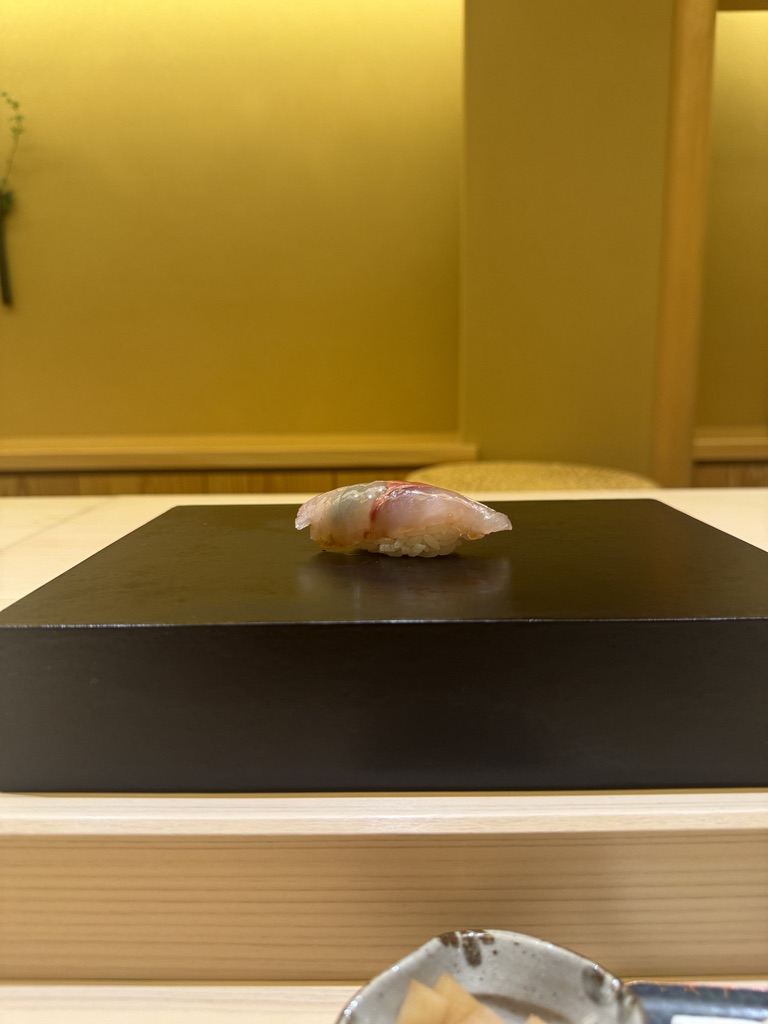 早々にガリも来ました。つまみと握りが交互に出てくるスタイルな模様。高級なお寿司屋さんで行った事ある中では初めてかも?