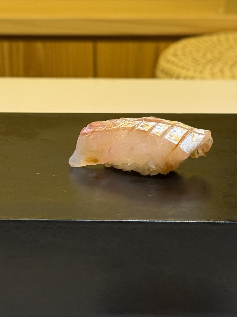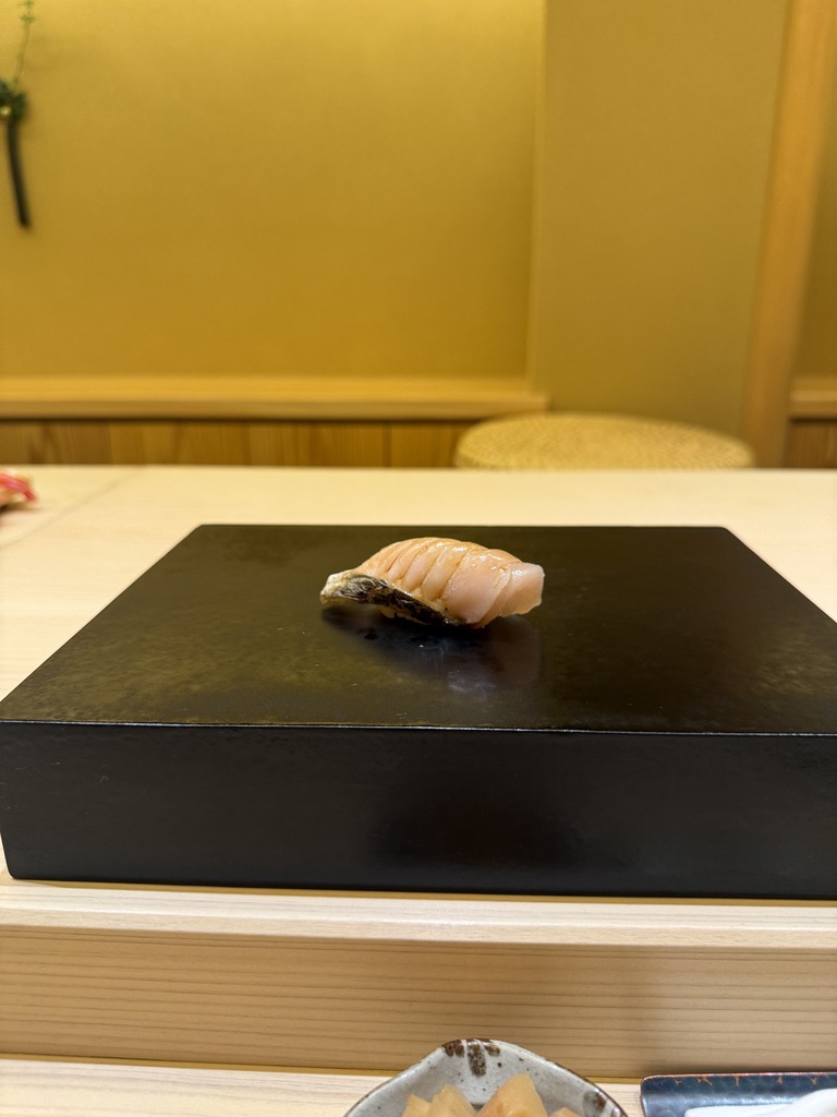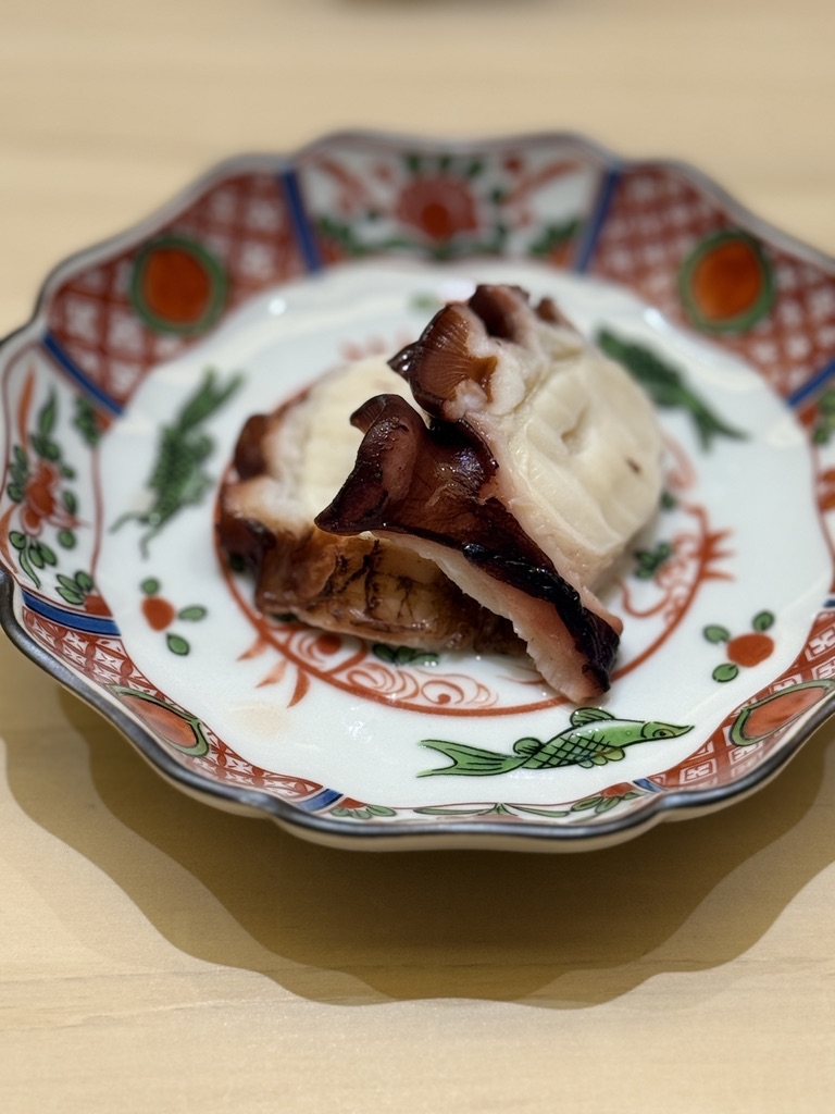 お寿司屋さんで野菜焼いたの食べるのは初めてかも、なしいたけ。旨味ぎっしりで終盤でもサクッと頂けるのが嬉しい。