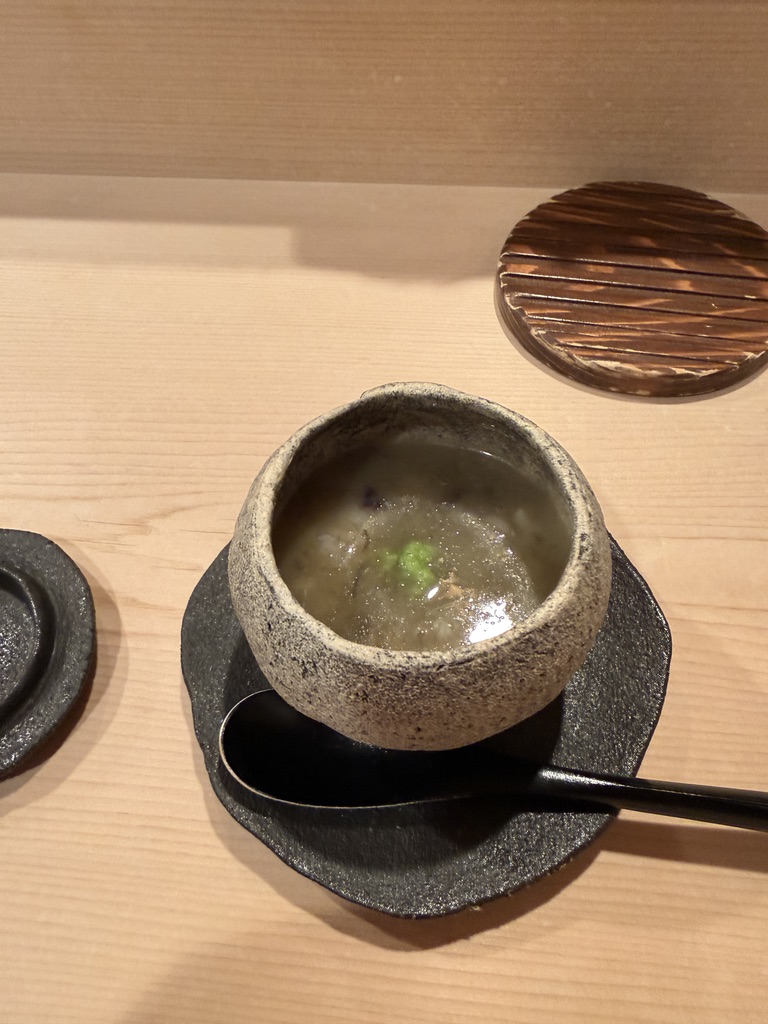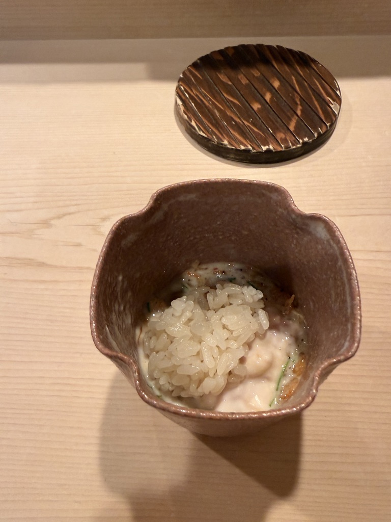 白子の甘味に海老の旨味と食感で激ウマ。スプーン止まらんところですが、半分だけ食べるようにご指示を頂いたので、我慢。