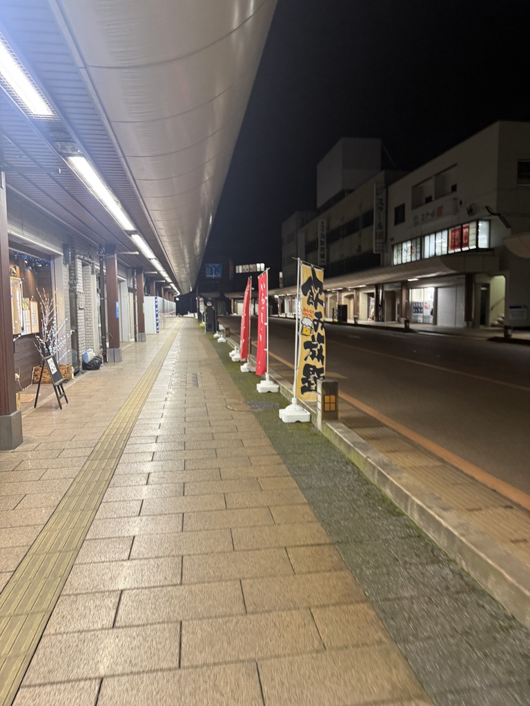 夜歩いてお店へ向かいます。誰もいない。。