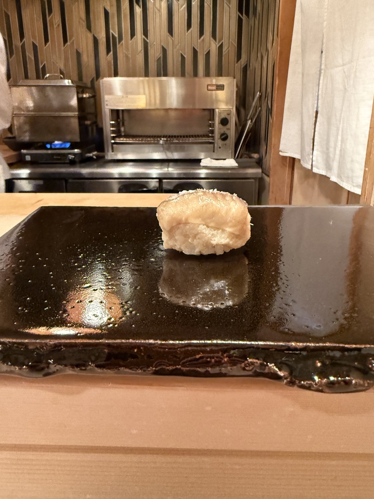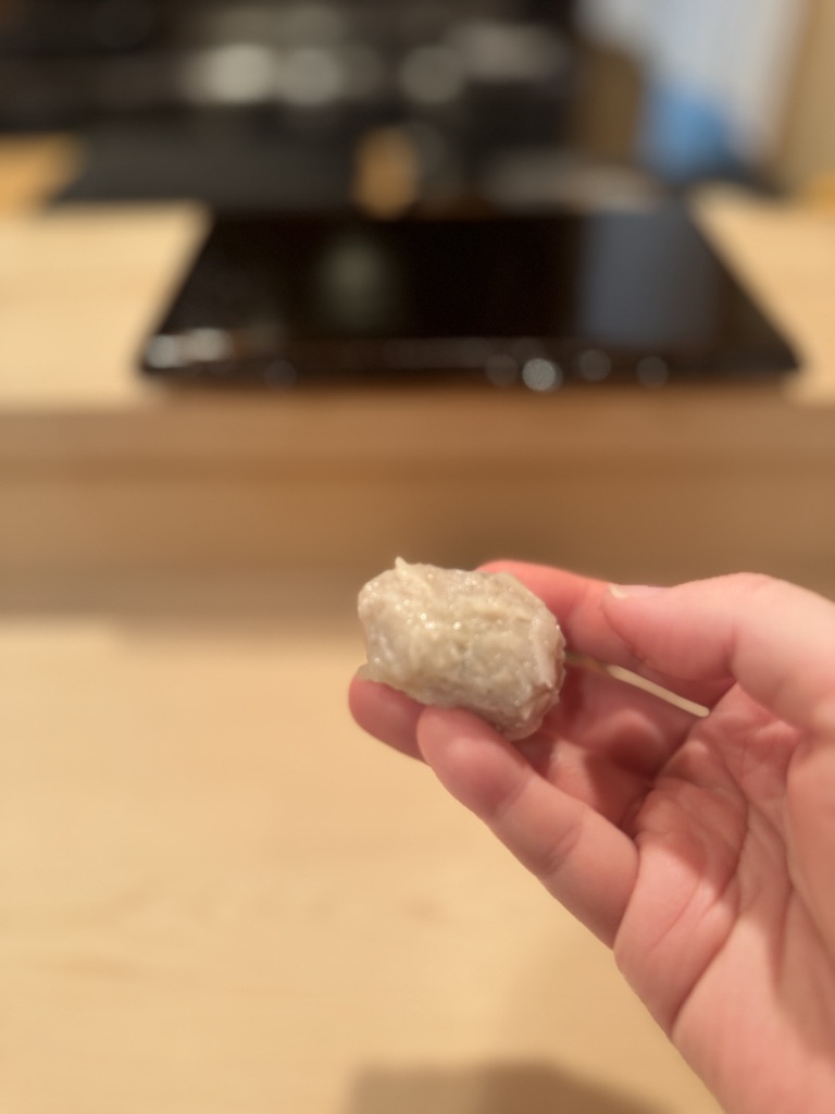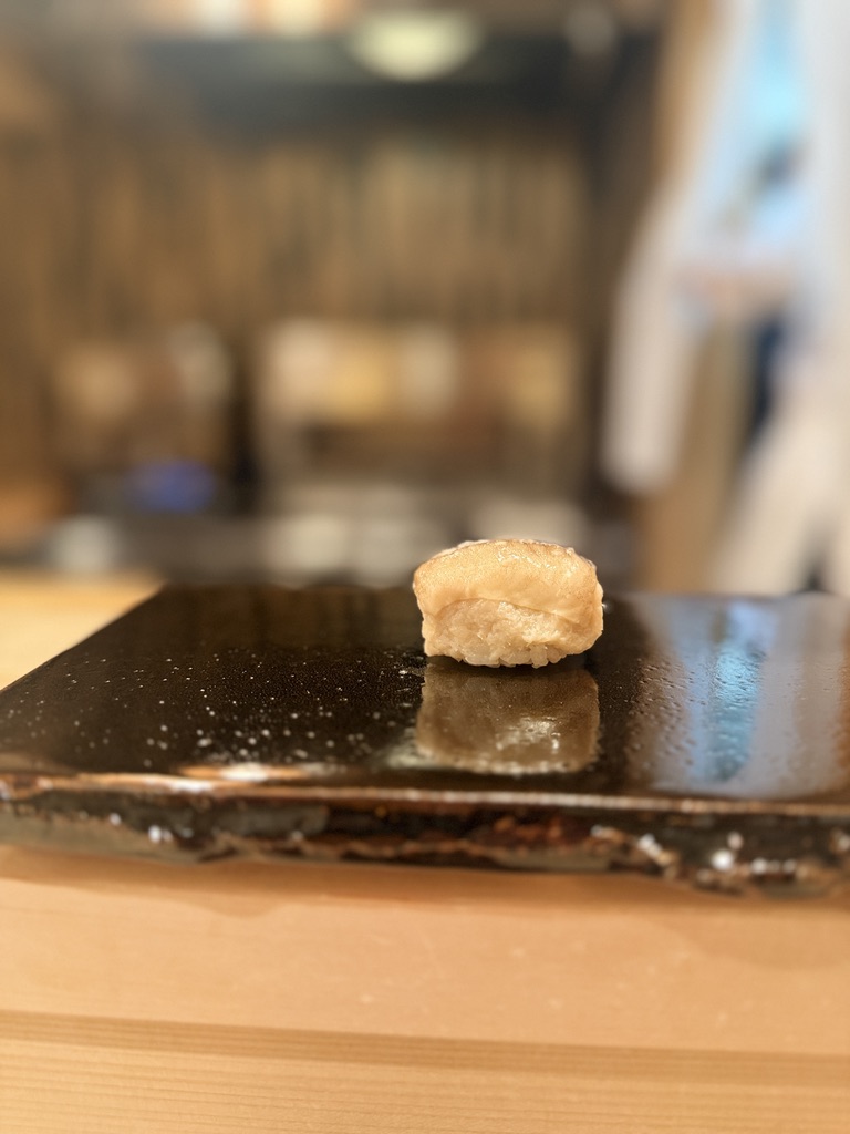 こちらも当然初めて体験。五泉市の蓮根使用。蓮根のしゃくしゃく感はうっすら残しながらも、口当たりがねっとりとしていて食べやすい。そしてしっかり蓮根とシャリがマッチしていることに驚き。