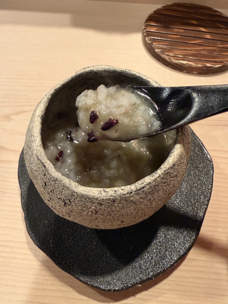 まずはお粥。お寿司屋さんでお粥ってのも初体験。