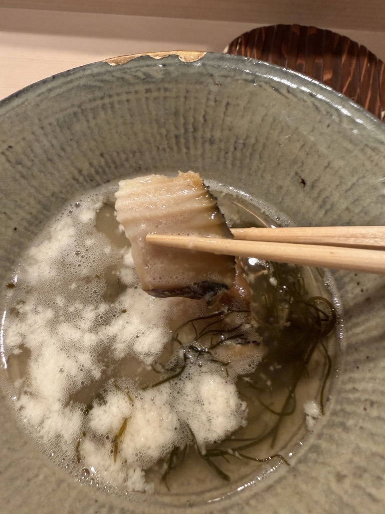 こちらは未食の一品。脂はないあっさり目のお魚も、旨味が凄い。これは貴重なものを頂きました。