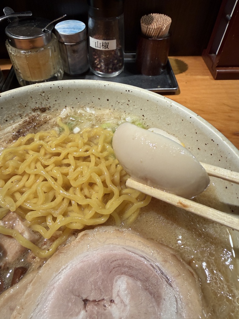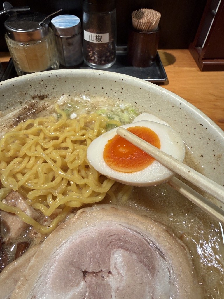 味玉は半熟でうっすら味付きな感じ。