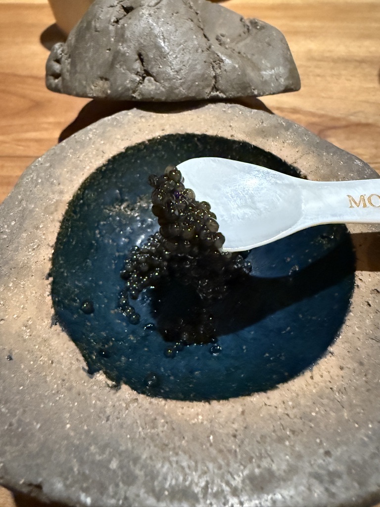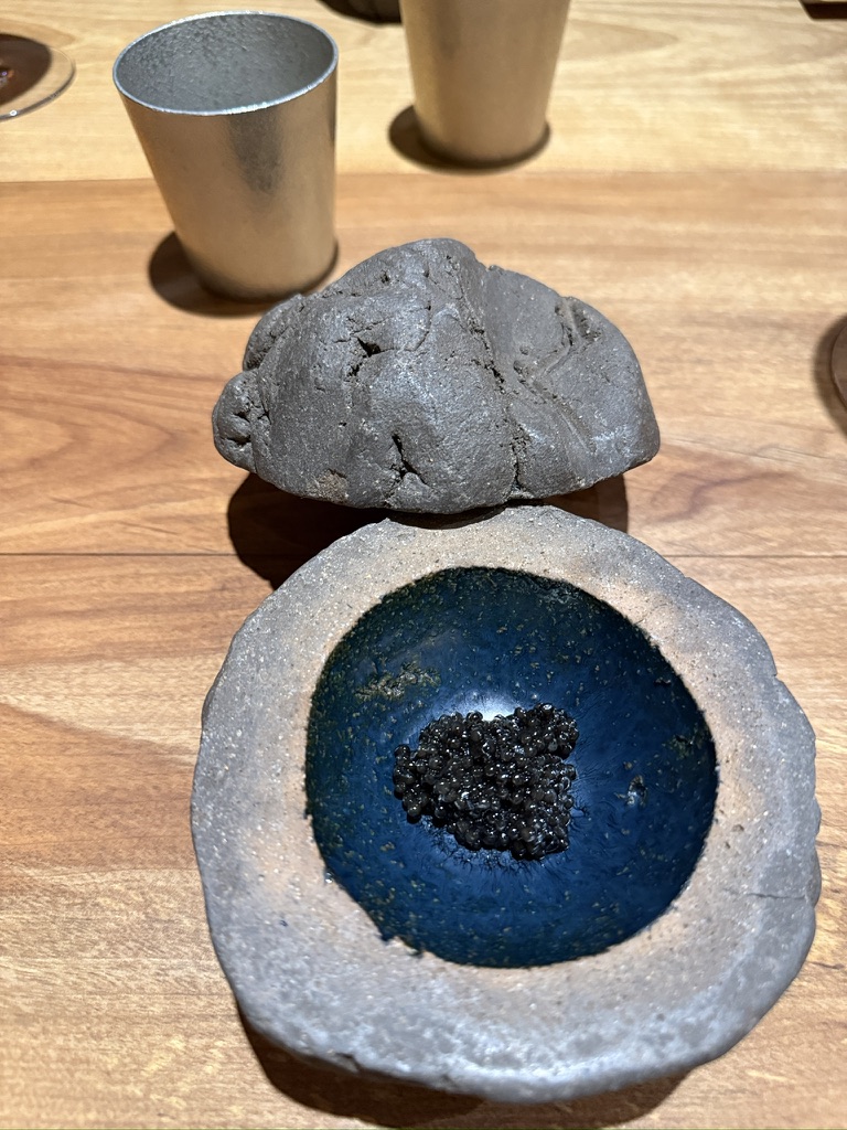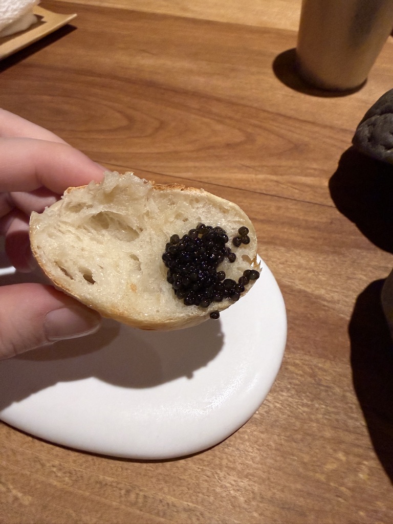 これはうまい。やばすぎ。温かいキャビアを口に入れると塩味と旨味が飛んできます。