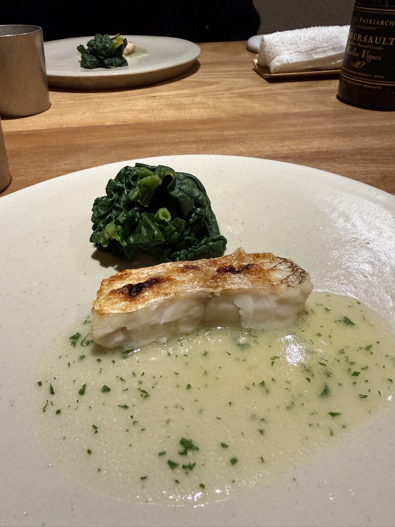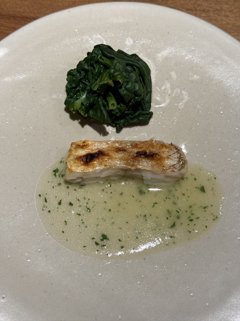 甘鯛と寒ほうれん草。皮目バリっと身はしっとり甘く、香りが海老の香り。海老で鯛を釣るの文字通り、海老を食べているから海老の香りがするそう。にしてもここまでしっかり香りがするものは初めてかも。