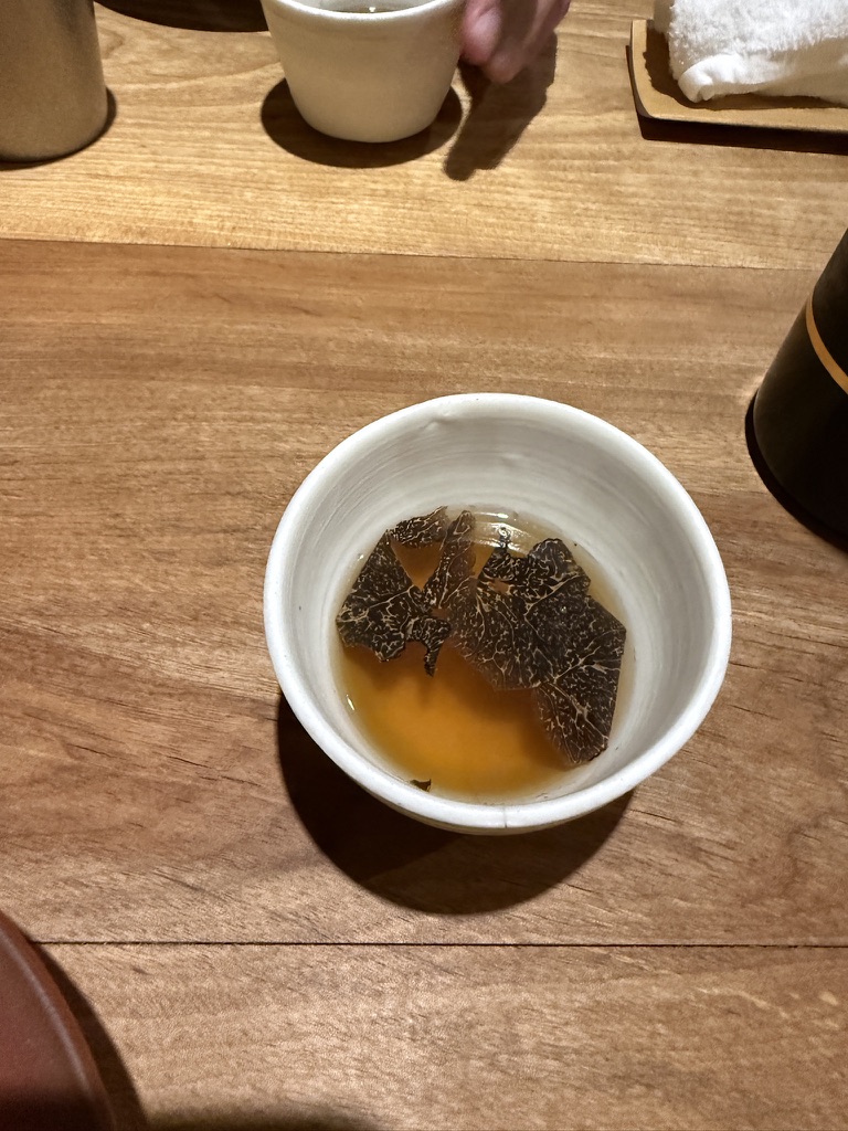 しれっとトリュフのスープも合わせて頂きます。こちらはちょい薄味。トリュフの香りがたちます。