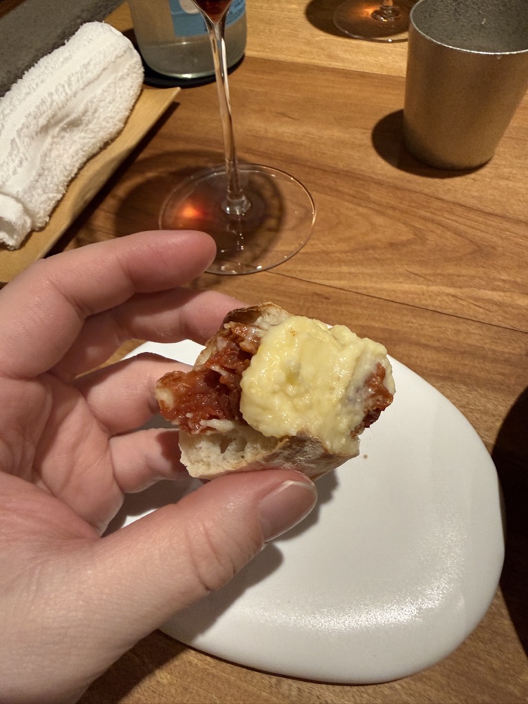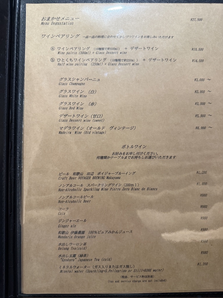 料理のコース、ワインペアリングともに感動でした。ペアリングは酒飲みはマストですね。はじめから頼んでも良かった。