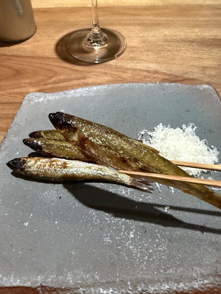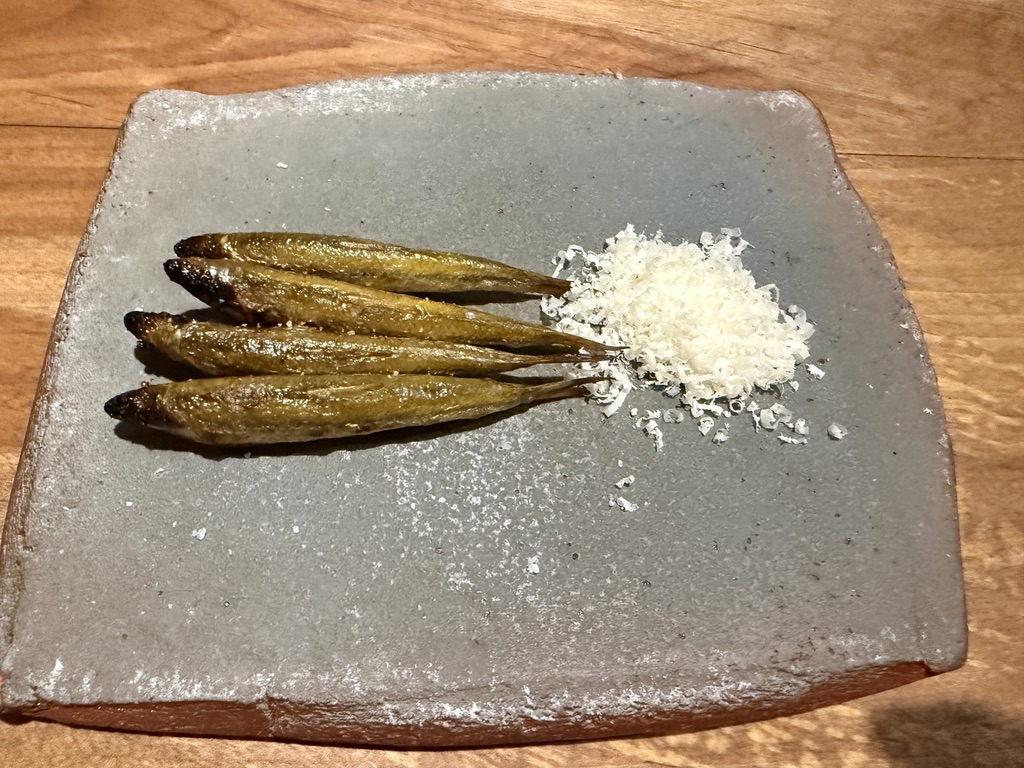 チーズの塩味とコクがホンモロコの淡白な味に乗っかってうまし。