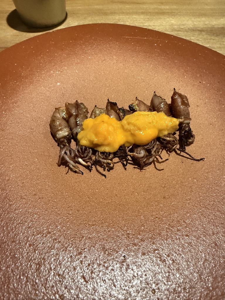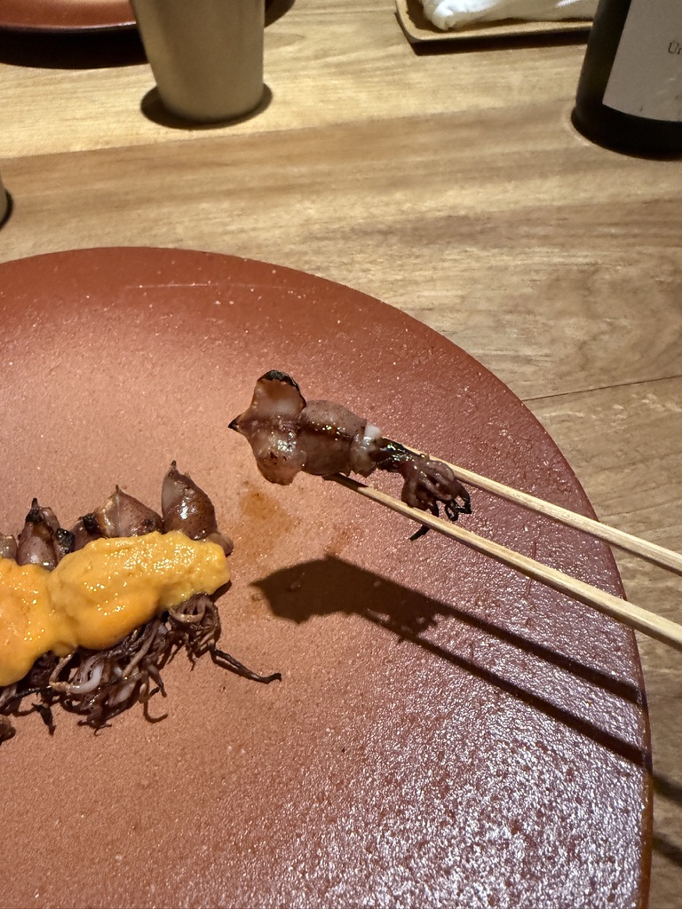 まずはホタルイカのみを。単体でもめちゃうまいな。足の部分だけ意図的に焦がして香ばしさを出しているらしい。