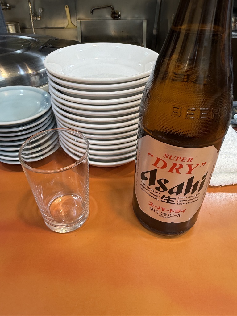 しばし飲んだあと、餃子を追加発注。1から焼くので少し時間がかかる。待ちながらビールがすすむ。