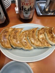 しばし飲んだあと、餃子を追加発注。1から焼くので少し時間がかかる。待ちながらビールがすすむ。