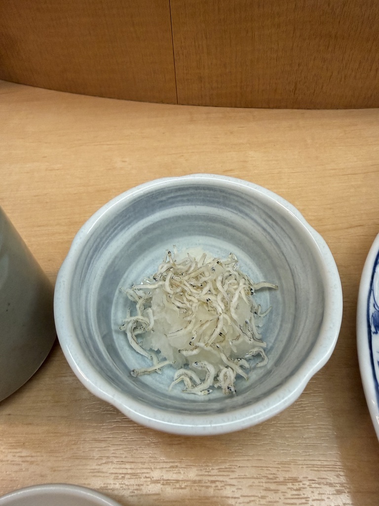 小鉢はおろししらす。さらっとした量で、箸休めにちょうど。たくあん、焼き海苔(丸山海苔)付きで、昔ながらの定食の構成がそのままある。