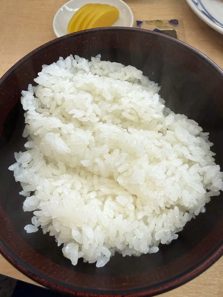 ご飯は漆の器にどっさり。朝精米しているという話を後で知ったけど、確かにツヤがふっくら。うまい白米だった。