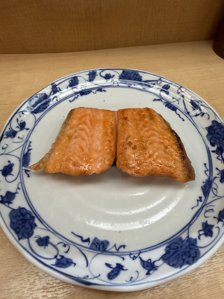 鮭自体はしょっぱい系ではなく、脂もそこまで強くない。ただ鮭らしい旨みがしっかりあって、焼き加減はばっちり。